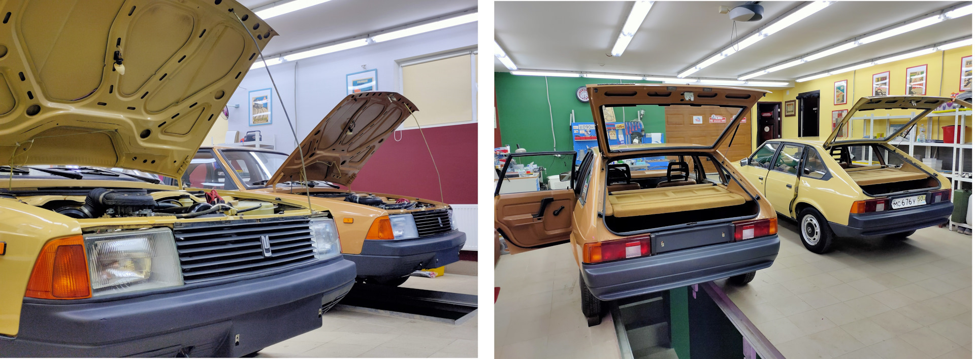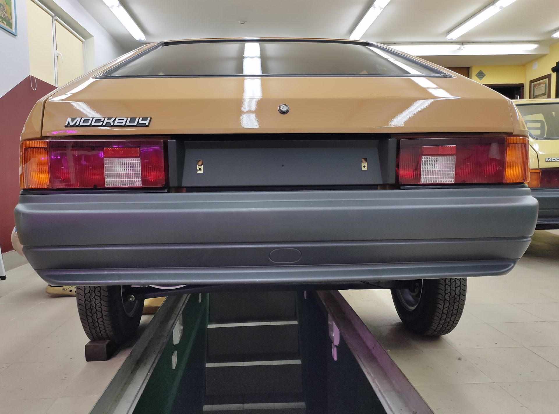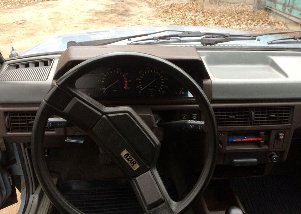 Первые товарные машины(1986-1987) с толстыми боковыми стеклами, заднее без обогрева, приборный щиток без суточного, боковое зеркало с корпусом и элементом 2108, нет брызговиков, салоны сиденья с Югославским Велюром бежевый песочный, серый и голубоватый…Салоны карты бежевые и шоколадные(терракотовые), есть задние ремни, моторы 2106-70 с ГП 3.9.Руль с острой гранью, ключи без надписей, металлические форсунки омывателя.Табличка подкапотная как и эмблема AZLK на руле с красноватым оттенком, с 1988-1989 черная станет.Другая шкала печки.Кнопки были белые 1986-1987. потом 1987 вогнутые цветные, и с 1988 обычные.Фары FER DDR Ruhla с 1986 до 1992 года. 1986-1988 Колпаки на колесах с крашенными серебром двумя кольцами и Мкой в центре