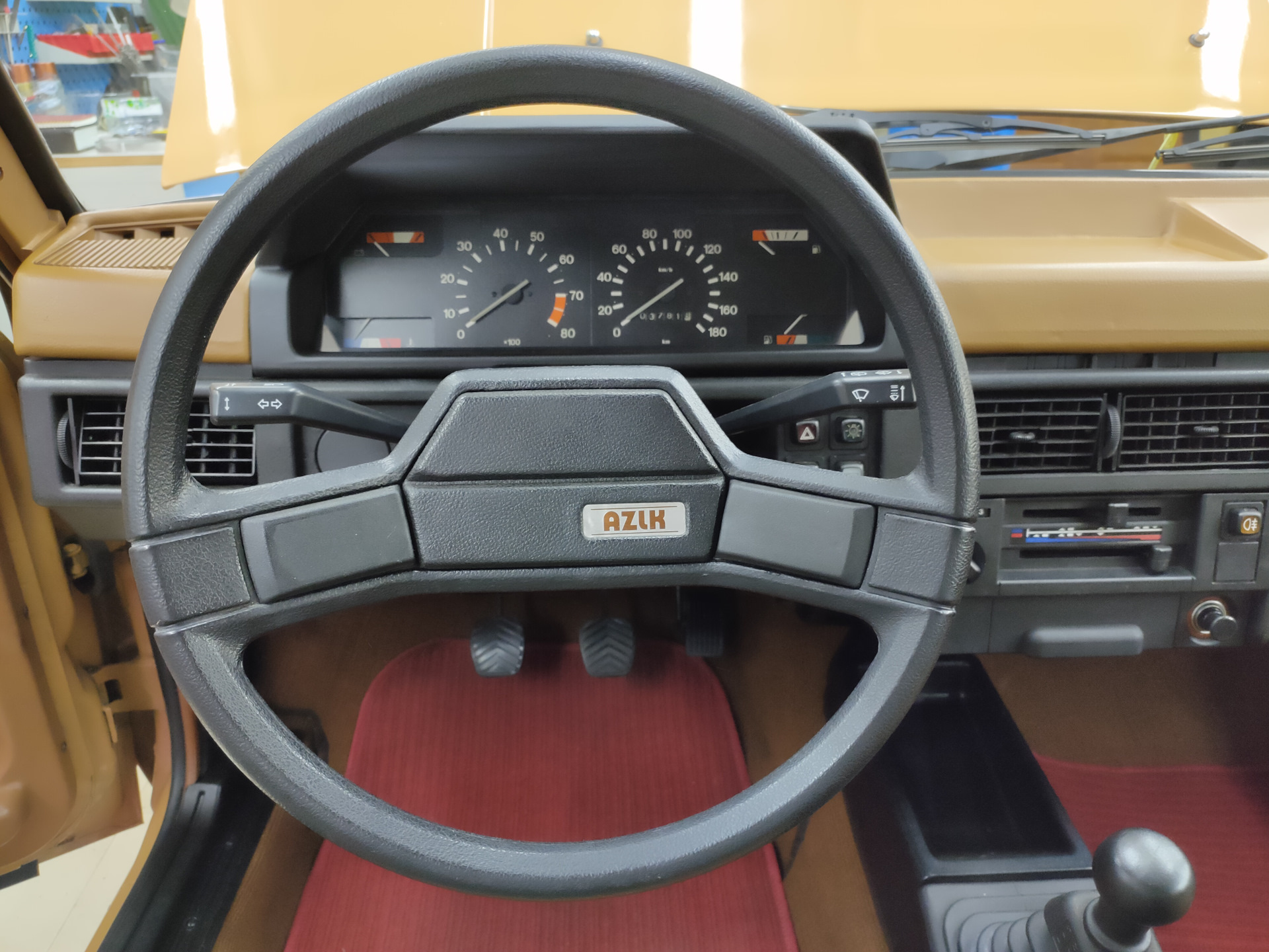 Здравствуйте! Надо смотреть под углом, фиолетово красный бланк, на руле оранжево красный шрифт он видел. И да, на руле латиницей было AZLK, а на Русском языке очень редко было АЗЛК, я только в УКЭР АЗЛК такое видел, на макете торпедо 21419 праворульном.