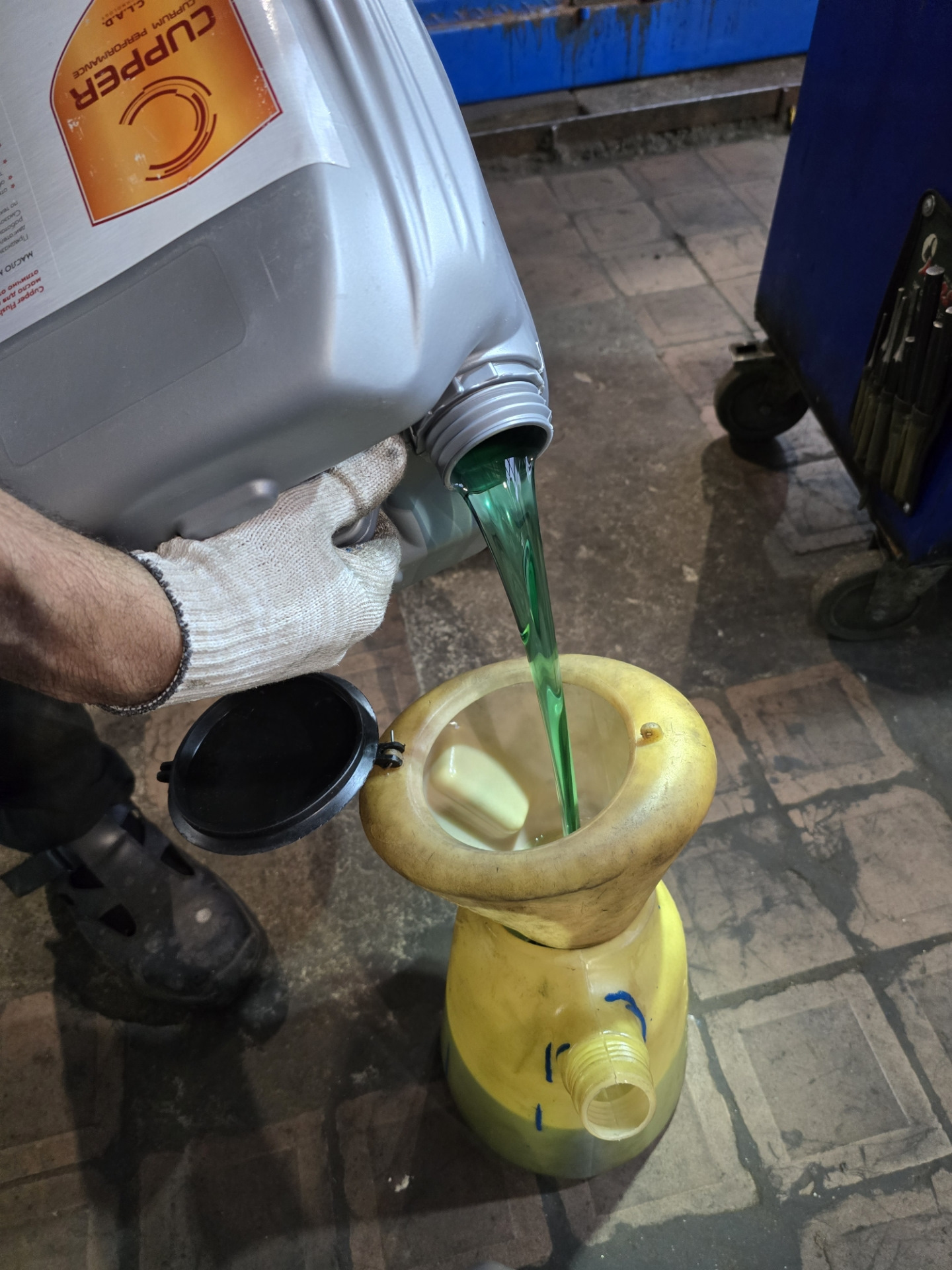 ТО 170т.кмАрт., памятка.Записался, как обычно, в MNService.Заезжаем в ремонтную зону. Обматывают стречем руль и одевают пакет на водительское сиденье.Машина на подъёмнике. Канистры на готове.Сливаем старое масло. Пробег на нём 9т.км. Чёрное. Свойственно дизельному двигателю.Перед заменой масла, по традиции, промываем двигатель. Cupper flushoil ultra. Ну и название 🫣Заливаем бледнозелёное промывочное масло в лейку.Затем в двигатель. Затем выгоняет машину на улицу. Торохтим на холостых оборотах так 20 мин. Затем выключаем зажигание и 20 минут ждём. Далее опять заводим и торохтим ещё 20 минут. Получается промывка длится 60 минут.Затем сливаем промывочное масло. На вид светлее, чем то, что слилось после 9т.км. Но по цвету видно, что что-то вымыло из двигателя.Сегодня зелёная вкуснятина вот такая 🤗. Cupper xpf 0w30Заливаем в двигатель. Оно гуще и темнее промывочного. Ежу понятно 😄.Меняем масляный фильтр и сбрасываем межсервисный интервал.По приезду домой снял корпус воздушного фильтра и отмыл дома до блеска. Красота 🤗Заменил воздушный и салонный фильтр.На следующий день загорелось предупреждение о неисправности стоп-сигнала. Лампочка! Подумал я. Чтобы узнать какая именно, я поставил на запись телефон позади авто, а сам стал нажимать на педаль тормоза. Посмотрев видео, стало ясно, что правый стоп требует замены.Одна лампа была в запасе. Заменил без труда за 3 минуты. Даже не уронил лампу в фару 🤭👍