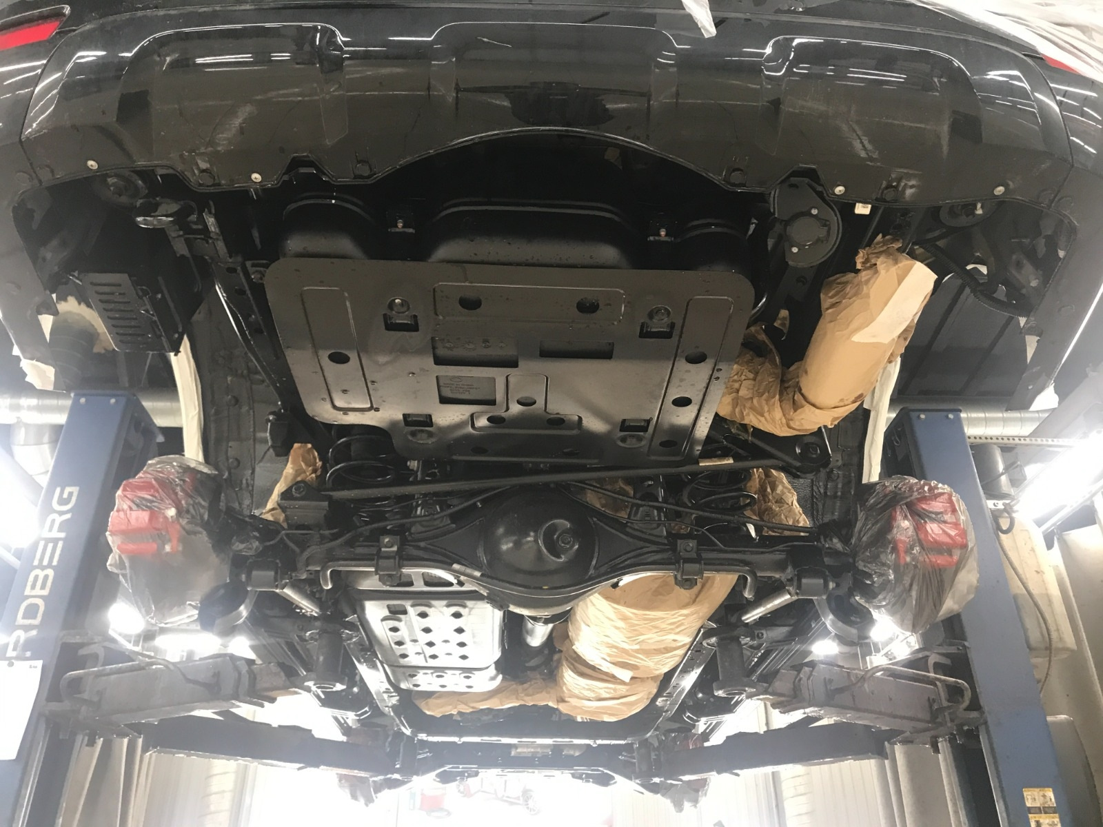Из того, что не понравилось: авто со стороны кормы поднимают за крепление рычага (как все рамные внедорожники), но тут их можно понять, потому что поднять за те места, которые указаны в мануале, на подъёмнике мало того, что нереально, так ещё и не понятно зачем? Помимо этого сорвали шпильку на колесе, но новую вместе с гайкой и работой по замене оплатили без возражений.