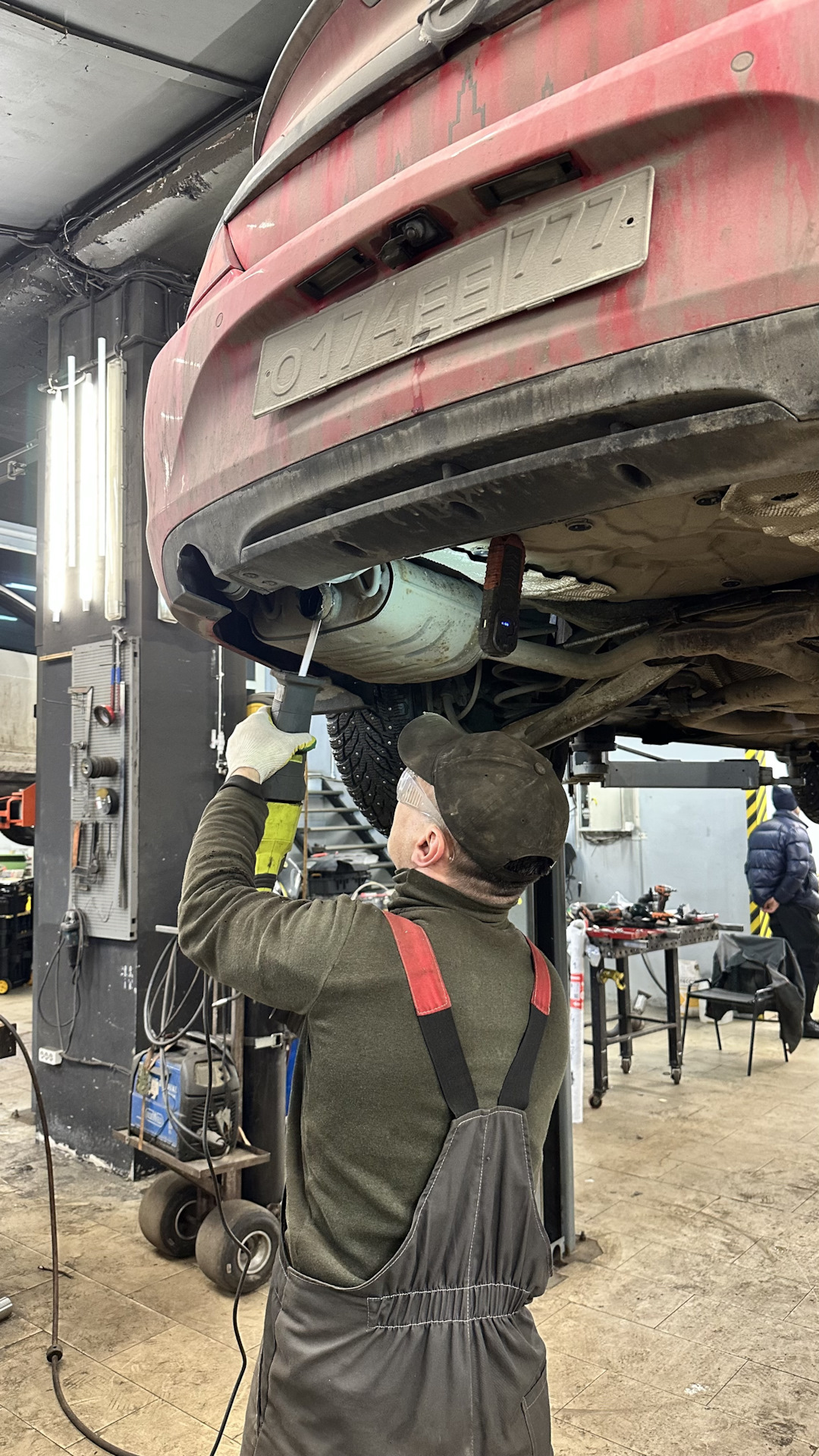 Нас встретил управляющий Артур, после чего Красная была поднята на подъемник для оценки масштаба беды, опыт Артура и сварщика Игоря, который впоследствии занимался моей Красной, привели к заключению, что все поправимо и ничего страшного не случилось!