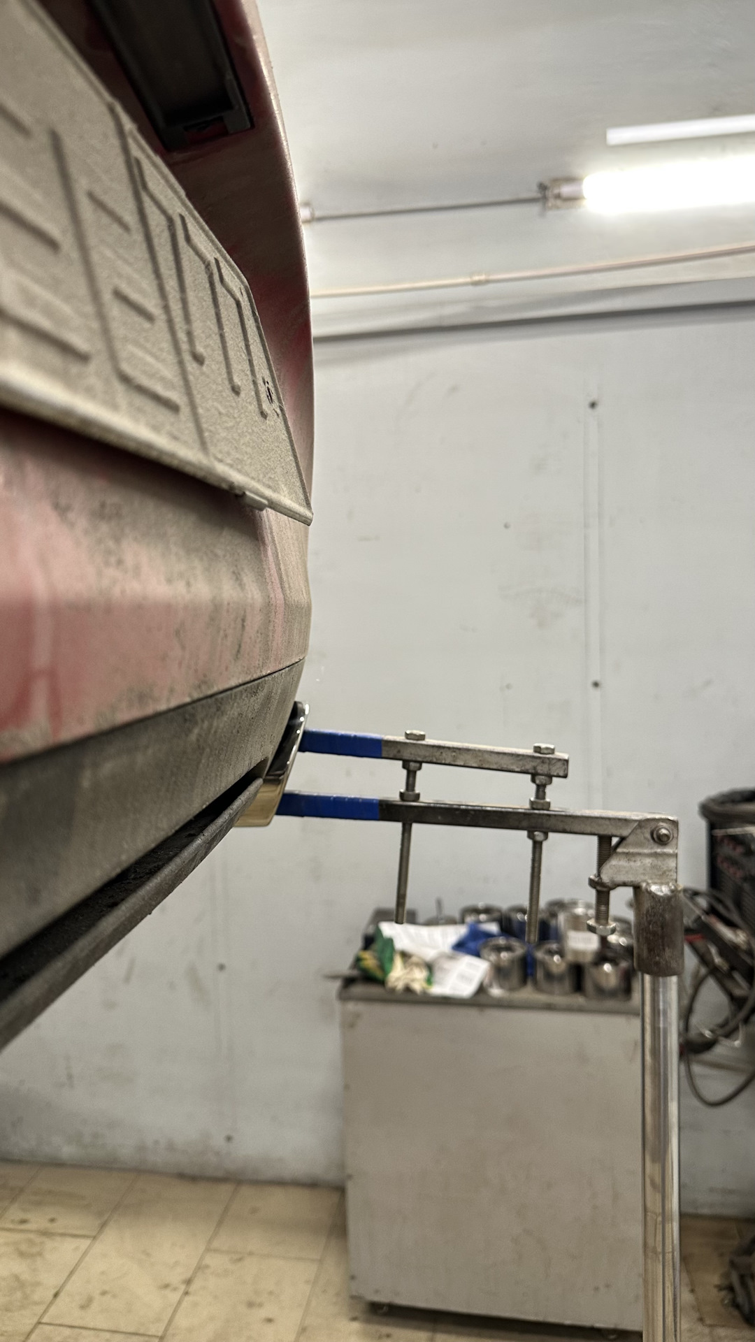 После того, как все швы были проваренные, мы дождались остывания и снова поднявшись на стремянку смотрели как насадка выходит из бампера относительно линии кузова.