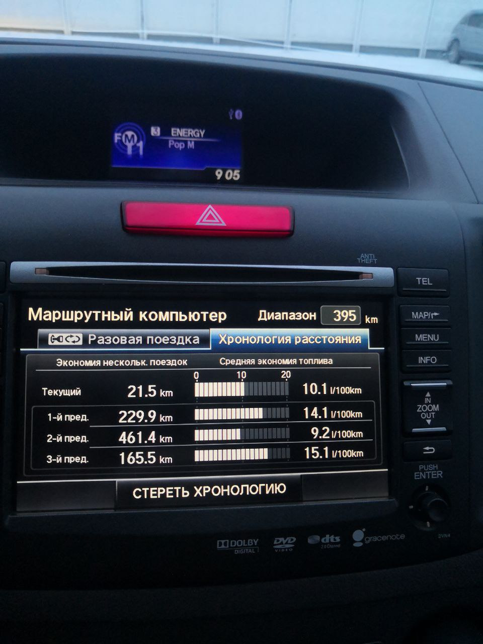 Двиг 2.4 автозапуск минут 10-15, режим трасса город с небольшими пробками, бортовик показывает 10,6 л, летом расход 9,5 л.Стиль езды активный.