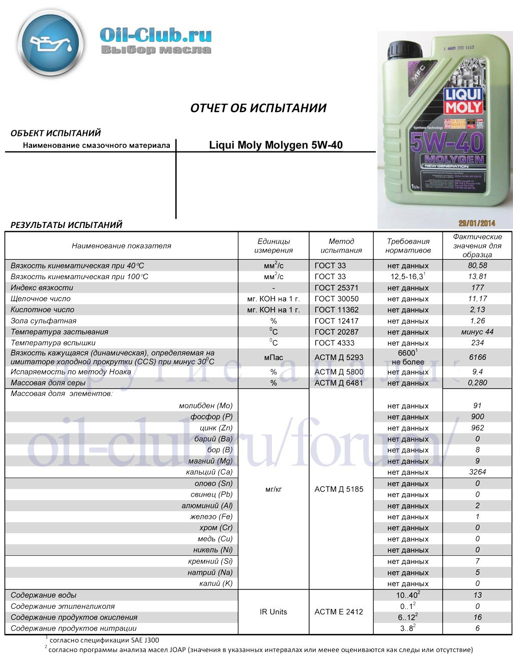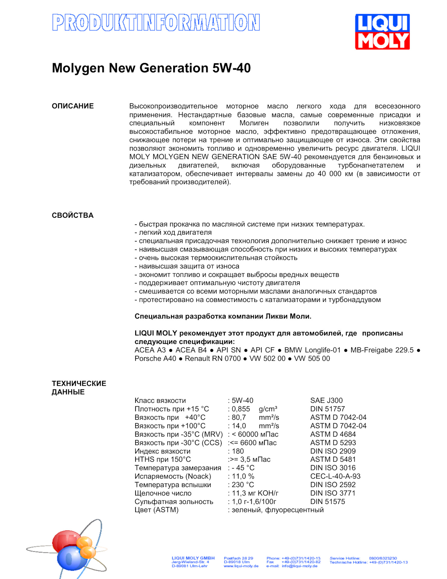 1. Масло Liqui Moly MOLYGEN NEW GENERATION 5W-40