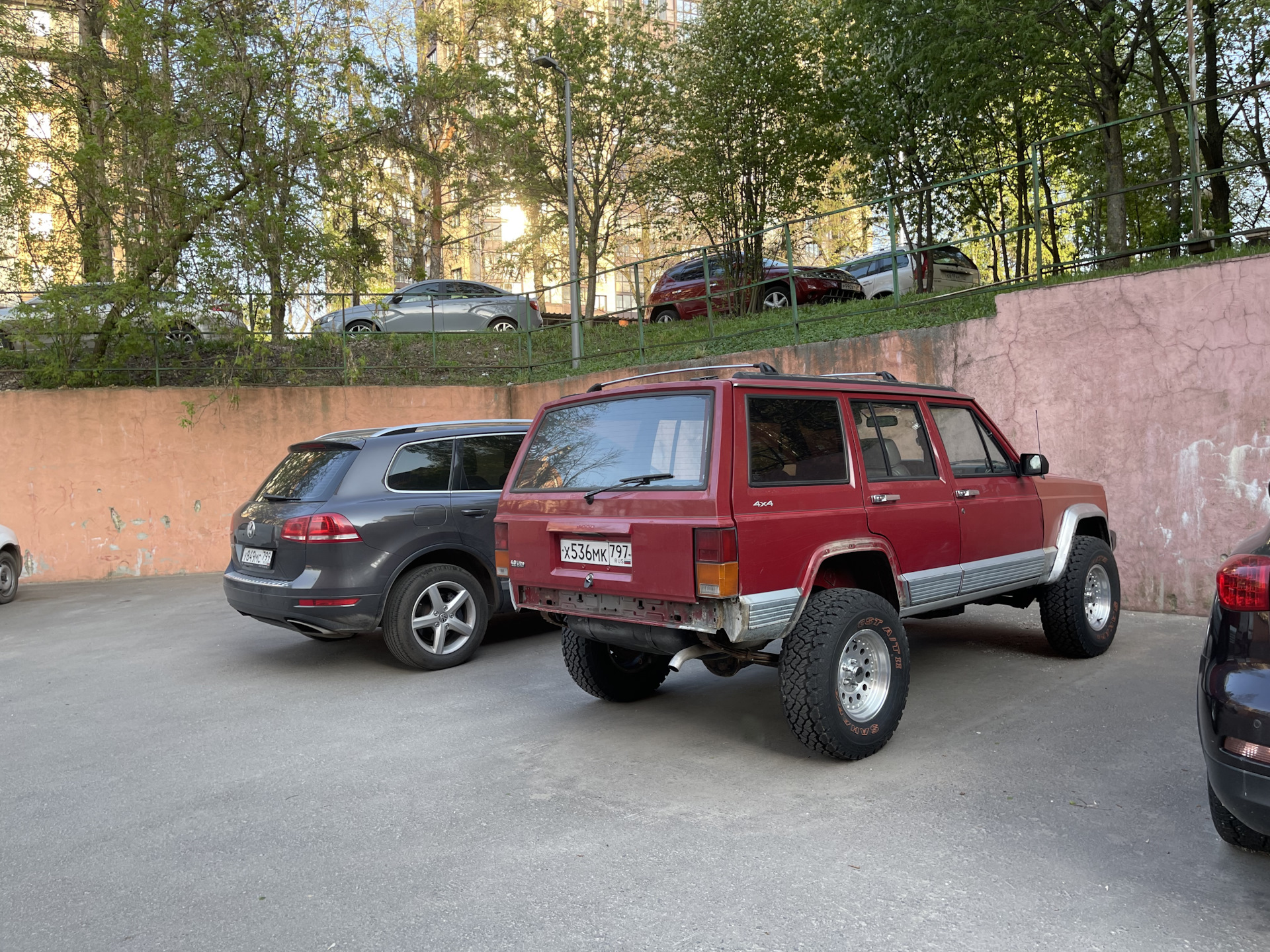 Туарег люблю и уважаю за его универсальность. Возможности, которые он дает на дороге столь высоки, что не все ими смогут адекватно воспользоваться. 225 км ч по платке и 5 км ч в достаточно тяжелом бездорожье или бордюре городском ) и задком повилять и дрифтануть можно. Jeep grand cherokee zj 5.9 тоже может многое, но с такими шинами и завышением дальше 150 км ч еще не набирал, в тяжелый офф роуд пока не забирался. По городу обе машины хороши, обладают всем необходимым с учетом комплектации 28 летнего американца конечно ) Эксплуатация продолжается.