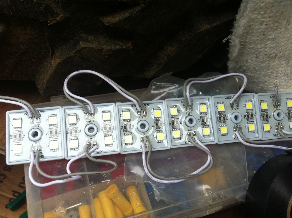 Как бонус кинул параллельно провод еще на один диод на алюминиевой полосе. Удобно должно подсвечивать в ночи лебедку и радиатор