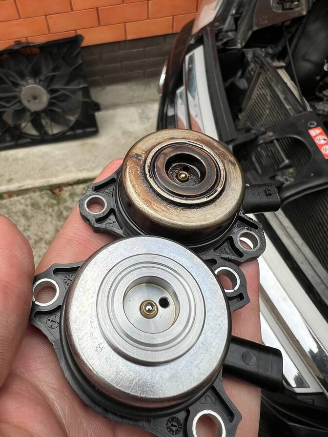 Старые клапаны оказались действительно проблемные — если начать их переворачивать, внутренняя втулка должна беспрепятственно выходить и заходить обратно, но по факту новый работает легко, а старый даже после отмывки растворителем работал плохо, а также шарик уже немного стерся.