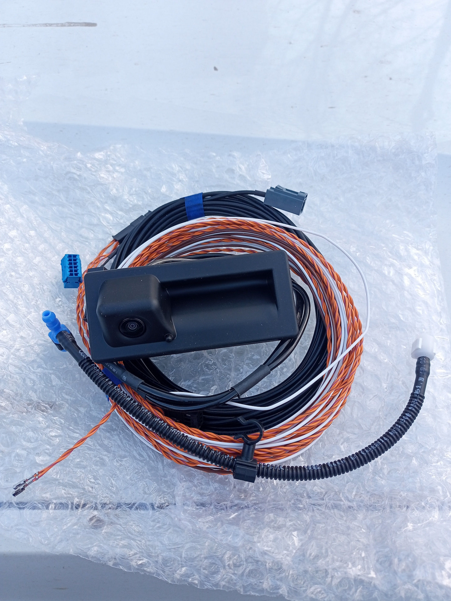 В ближайшее свободное время была снята обшивка крышки багажника с целью сбора анамнеза. Ничего криминального замечено не было: камера установлена в фонарь подсветки номерного знака, подключена через 4 пиновый круглый разъем, провод скреплен стяжками со жгутом штатной проводки. Изображение появилось, пропадало и пока есть. Но камеру думаю заменить на устанавливаемую в ручку с динамической разметкой и омывателем.