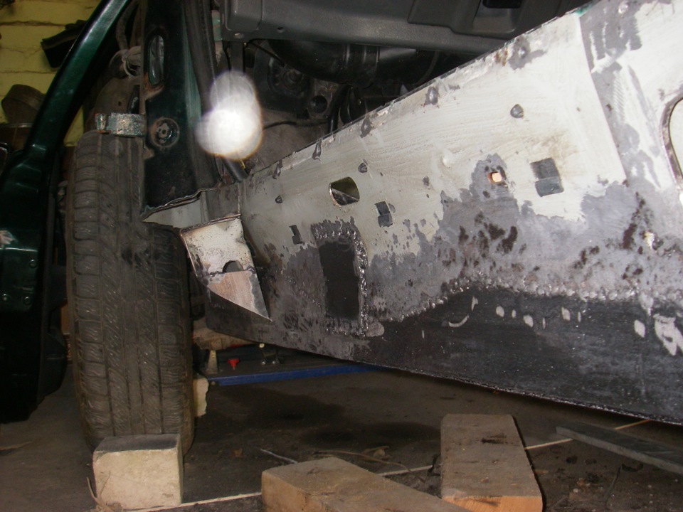 Короче так вот я и дотянул до самого того момента, когда порог уже предстояло вваривать. Его нужно уже ставить, а решения все не было. Вариант с выверчиванием отверстий уже после его монтажа мне тоже не нравился, потому что изнутри после сверления обязательно остался бы бортик… и чем больше внутри антикора, тем он будет выше.