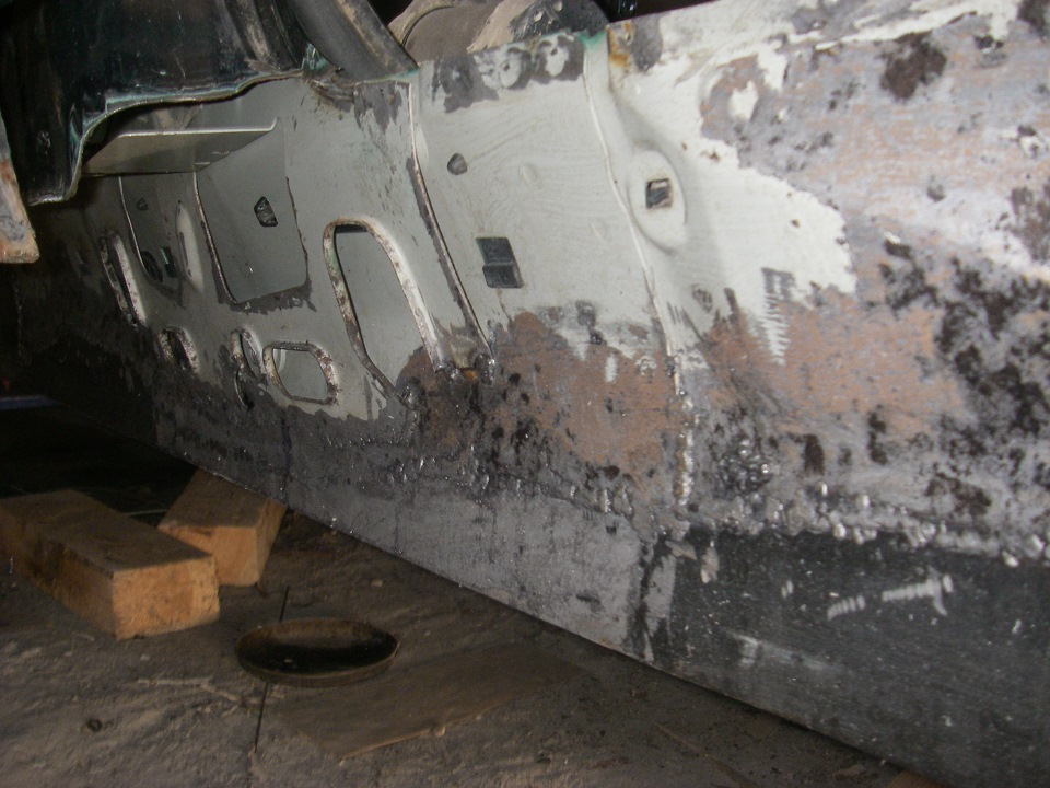 Те, которые за дырки, объясняли это тем, что внутри порога как минимум образуется конденсат и эта вода должна куда-то сливаться иначе коррозия будет только ускоряться. Те, которые против дырок говорили, что лучше залить внутрь масла и заварить все наглухо — мол технология проверена годами, масло будет заливать малейшую ржу, не будет густеть, внутрь не будет попадать грязь и тд и тп… И действительно, попадание грязи через дырки является самым слабым местом в философии непременного проветривания порога. Уж я то насмотрелся, сколько ее там внутри у меня было.