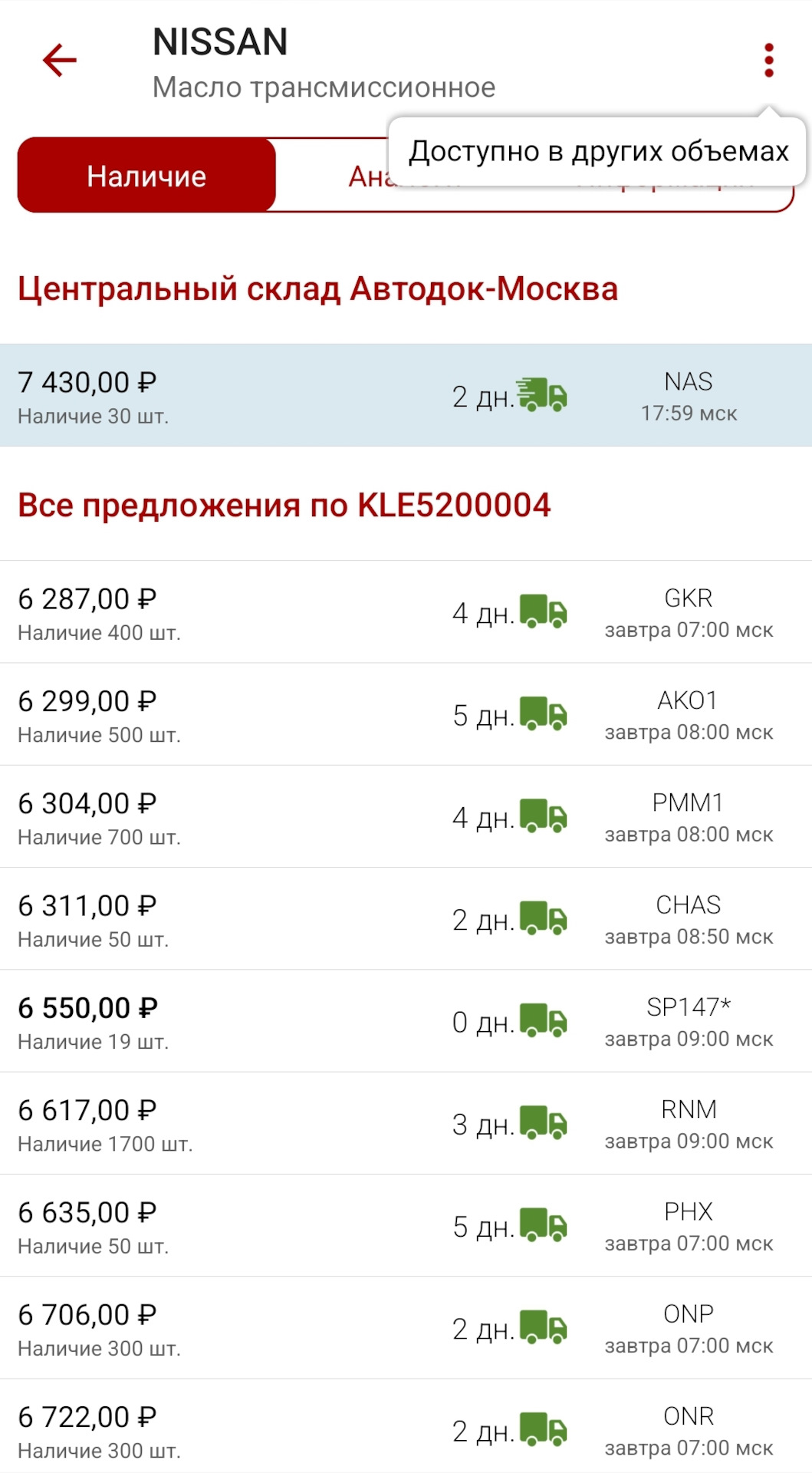 У меня есть автодок. 7430 это их ний оптовый склад. Там точно будет паль. Надо смотреть поставщиков Дилер или Дистрибьютер.