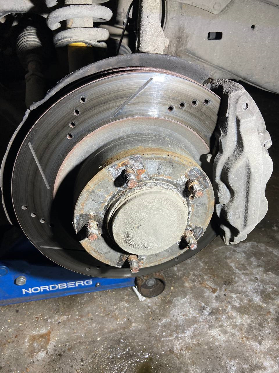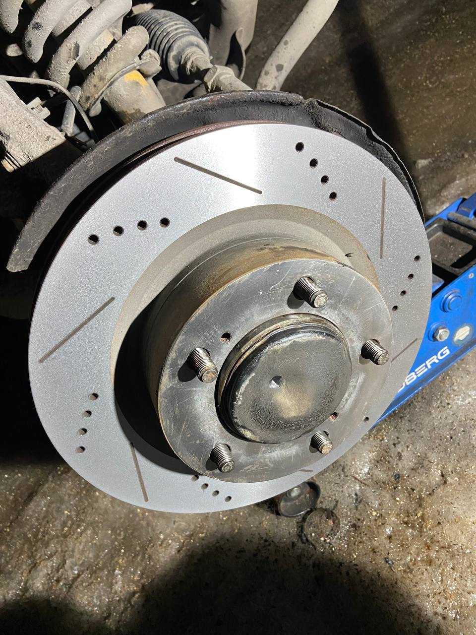 Колодки хоть и были жесткие, но они начали задирать диск. Вот это было прискорбно. Пришлось раскошелиться и купить Powerstop диски. Дело было тут www.drive2.ru/l/672803535615720639/