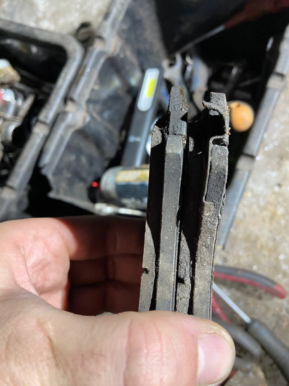 1. Колодки с момента установки (апрель 2024) ушатал до состояния трещин. НО, они продолжали так же эффективно тормозить. На каждой примерно по половине ресурса или около того.