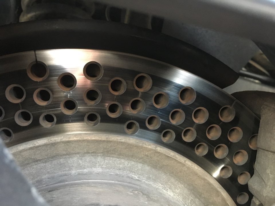 Собственный станок для проточки дисков творит чудеса) Диски как новые. Кстати при было выявлено искривление диска на 0.1мм где то. Биения на руле 0.
