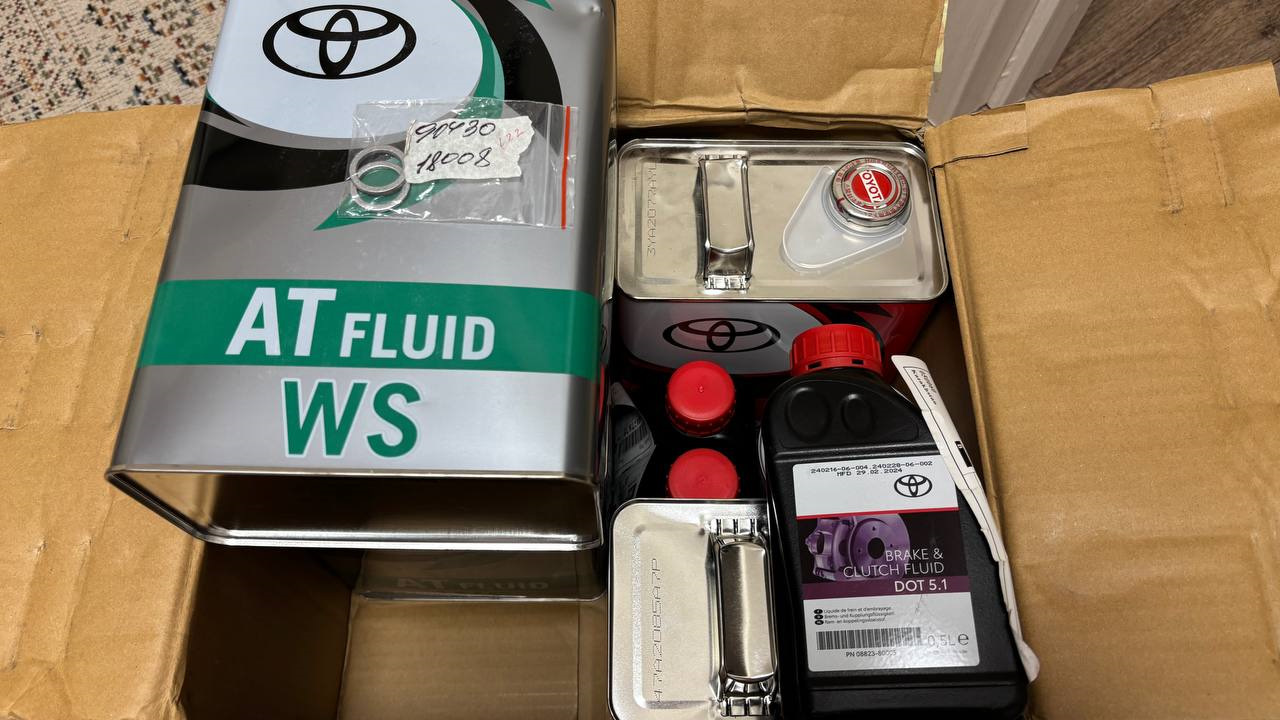 Фильтра были с прошлого заказа, в этот раз у WikiRus заказывал масло в ДВС и 8л для АКПП (жидкость, кому как удобнее называть) Тойота WS 08886-02305 (2 шт. по 4л) – 11 тыс. руб., кольца для заливной и сливной пробок АКПП 90430-18008 (2 шт.) 0,36 тыс. руб.