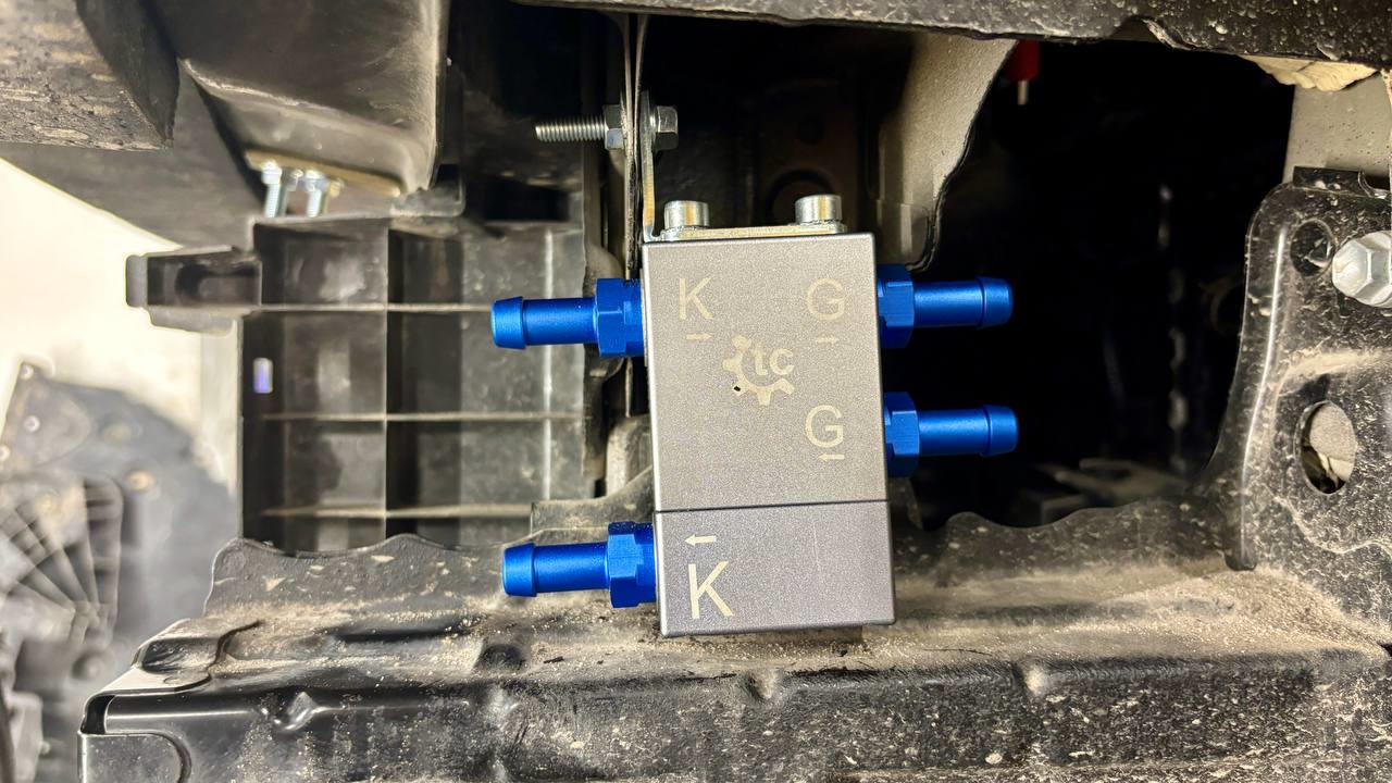 К G← подсоединяется шланг с выхода с теплообменника, а G→ подключается к трубке АКПП (приемка обратки с теплообменника).