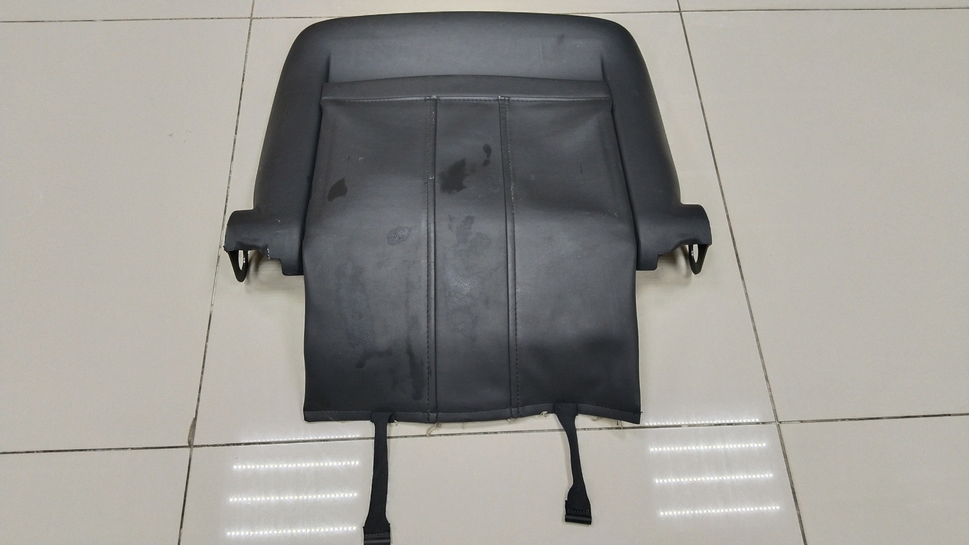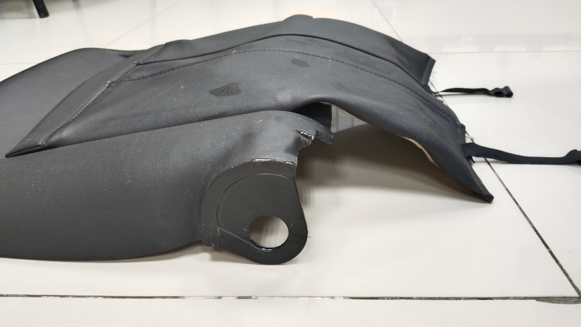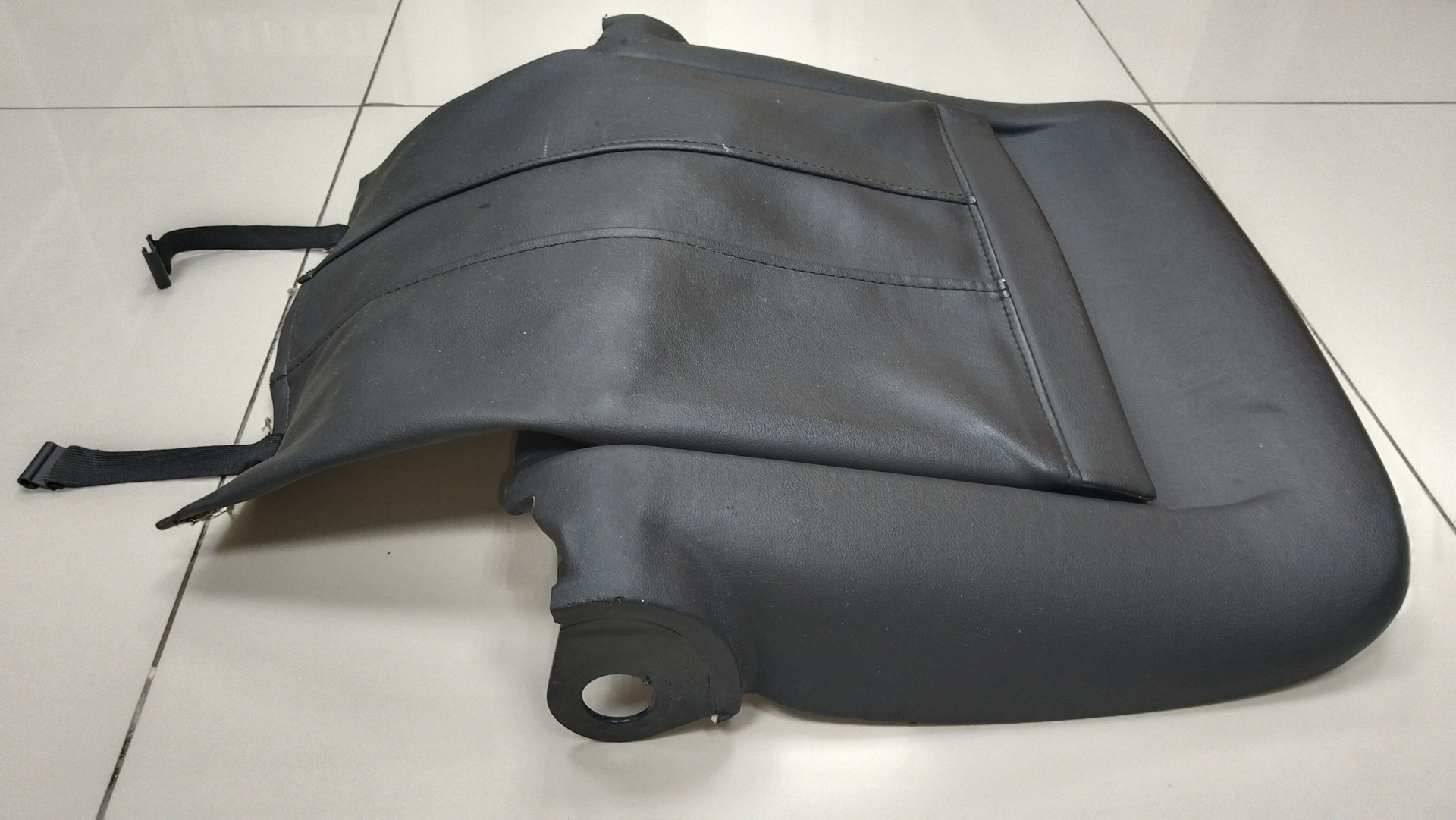 Отстегиваем два ремешка от днища сиденья, они дают доступ к поперечной белой пластмассовой перегородке.