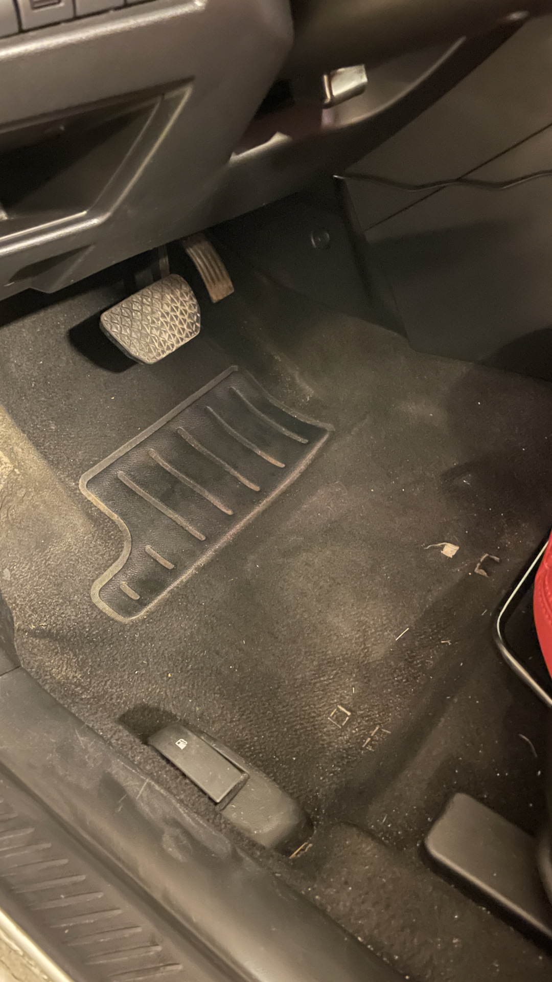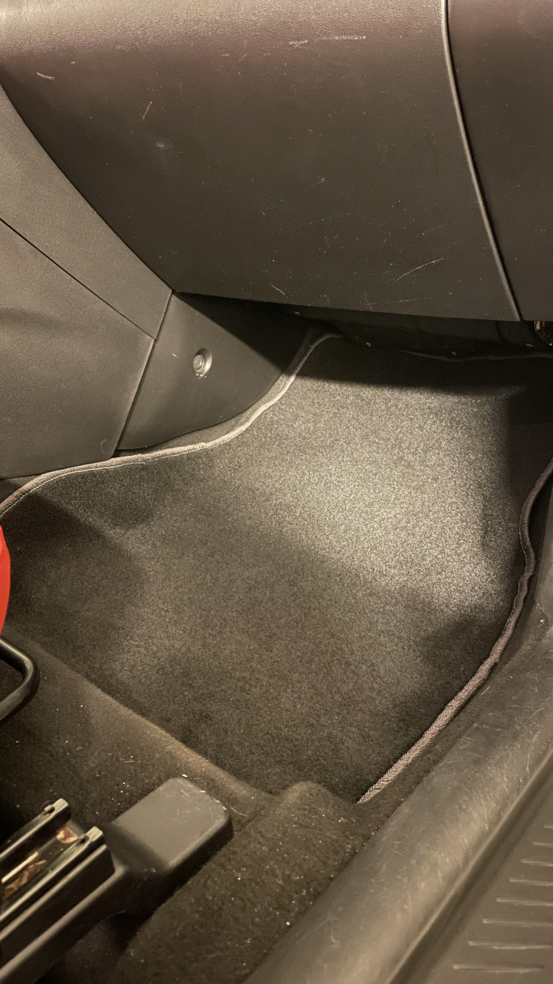 UPD: в процессе эксплуатации выяснил, что липучек, которые пришиты на обратной стороне ковров не хватает. Ковры постоянно стремятся съехать под педали. Решил с помощью, похоже, штатного крепежа для таких ковров.