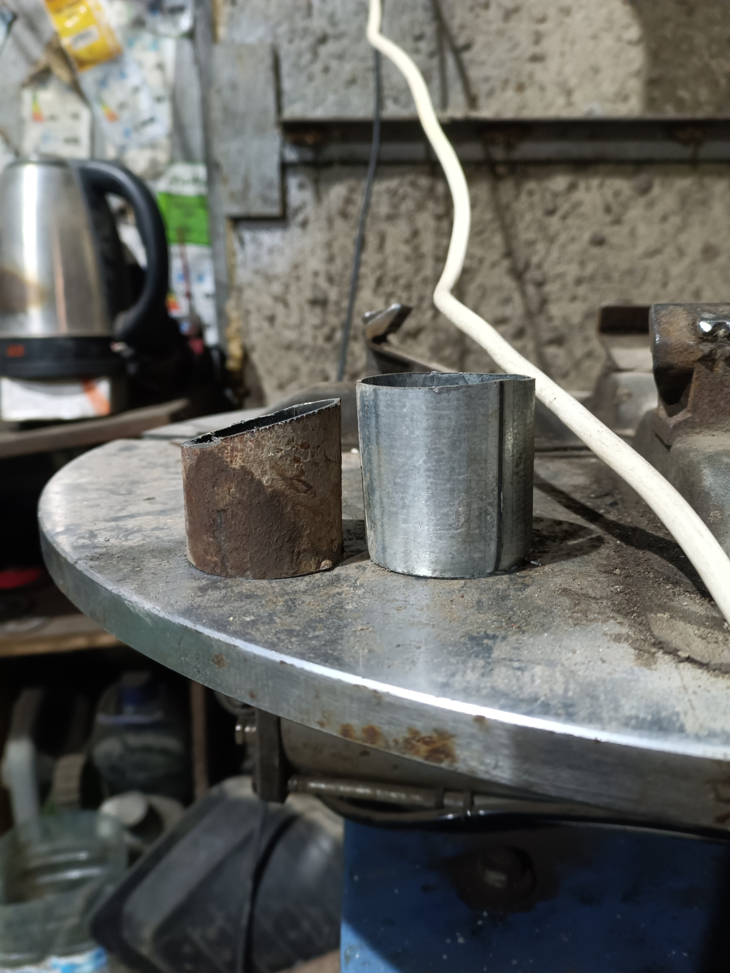 Так же заменил заднюю банку глушителя. Взял Trialli EMM 1805. Вот он поставился не очень. Во первых, глушитель под соединение "труба в трубу", а мне нужен под сварку. И немного загиб не тот. Пришлось под углом резать.