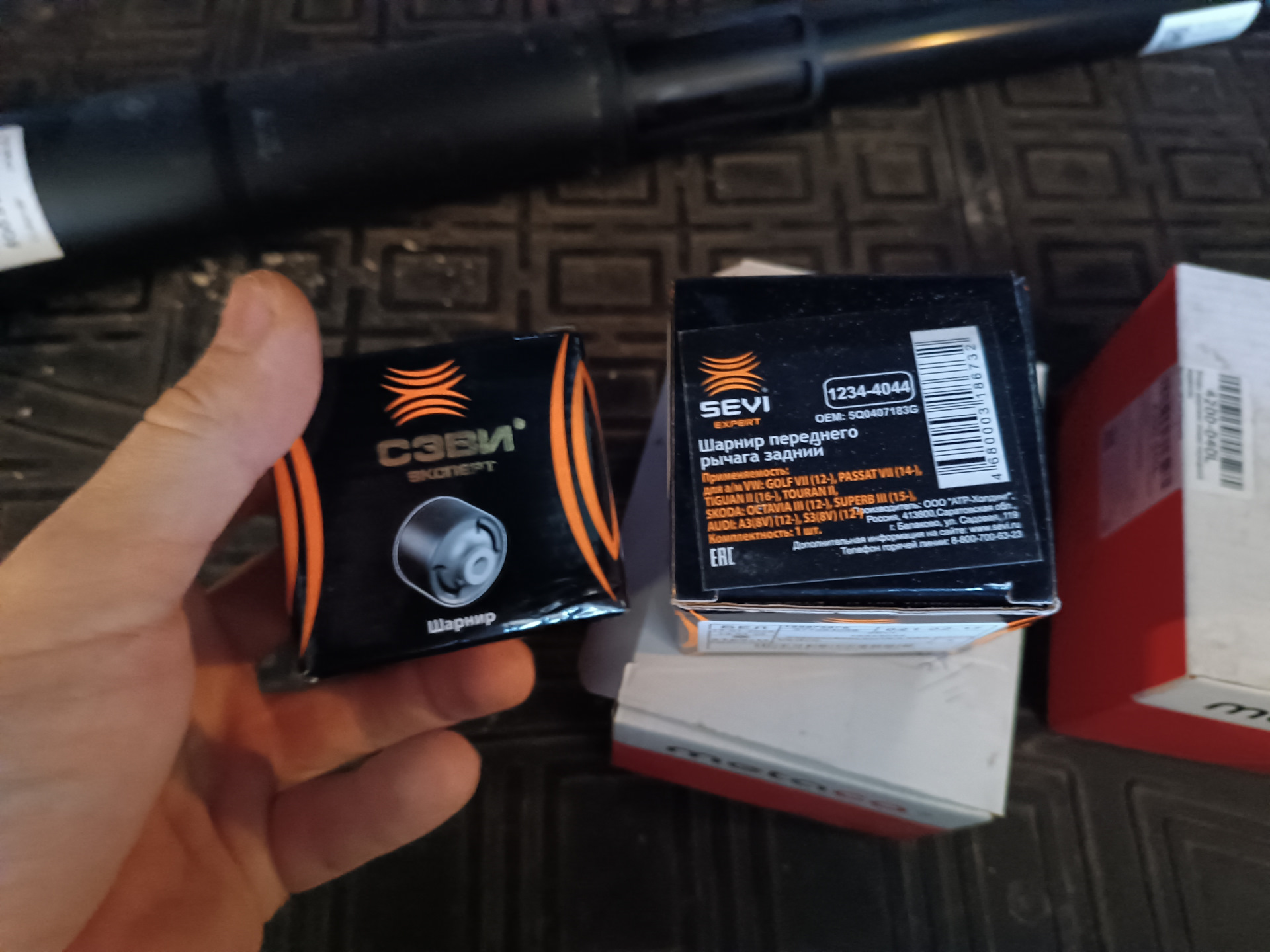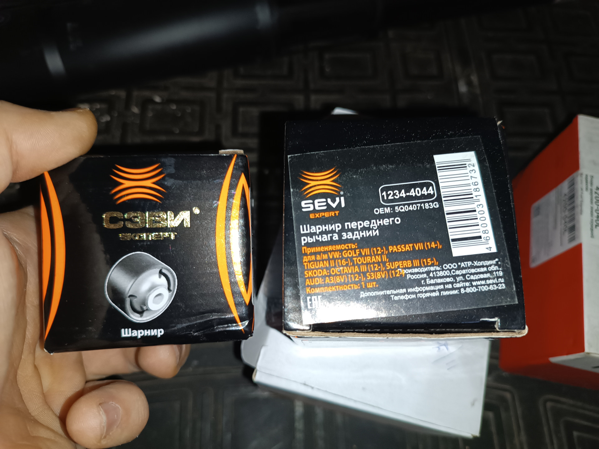 -В передних рычагах задние сайлентблоки от русской фтрмы sevi а также нижние шаровые опоры ( в прошлый раз на сервисе не увидели что их нужно менять а мне не понравились на повороте как был какойто призвук) и я решил заказать не дорогие проверить они ли.
