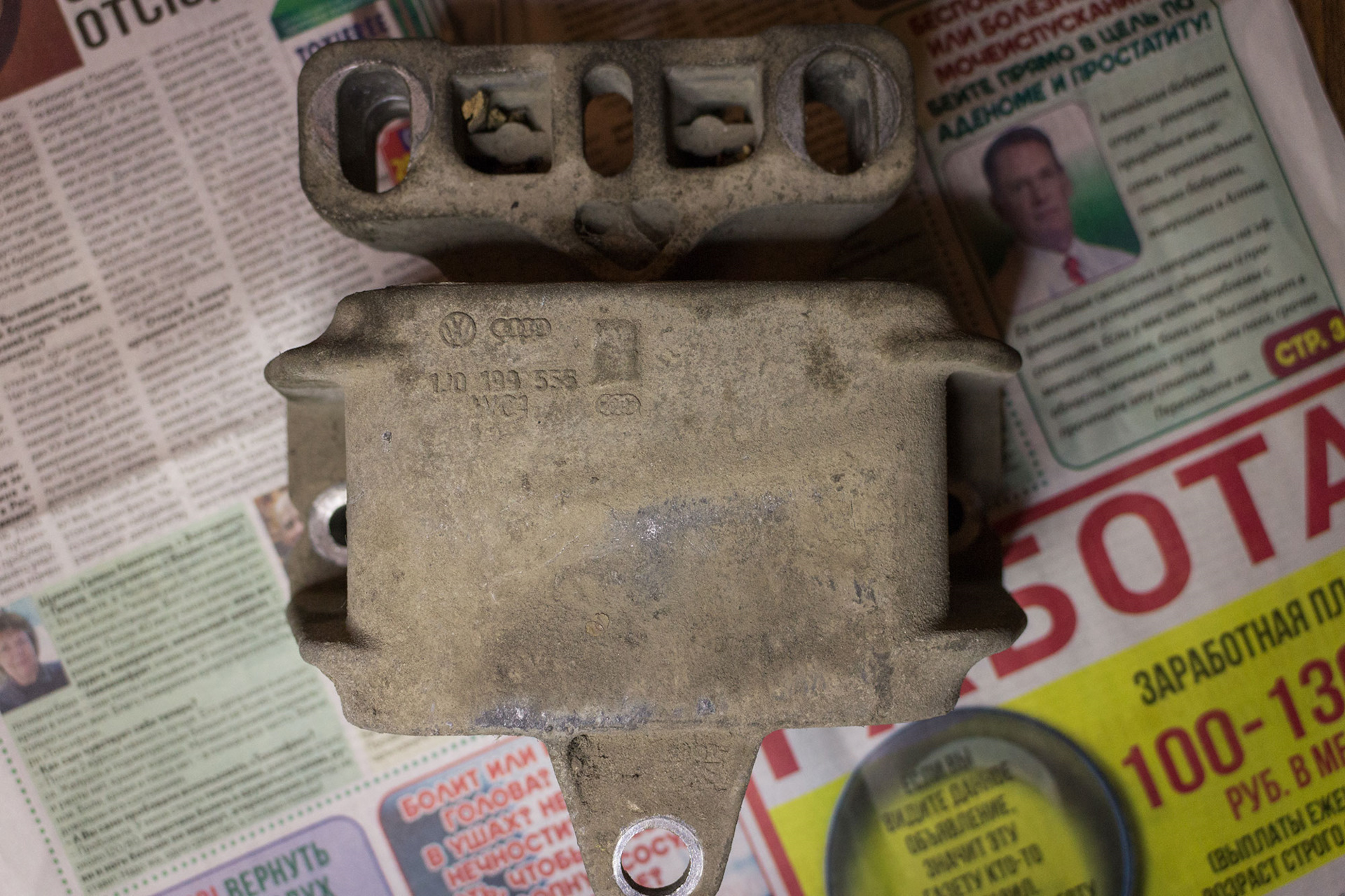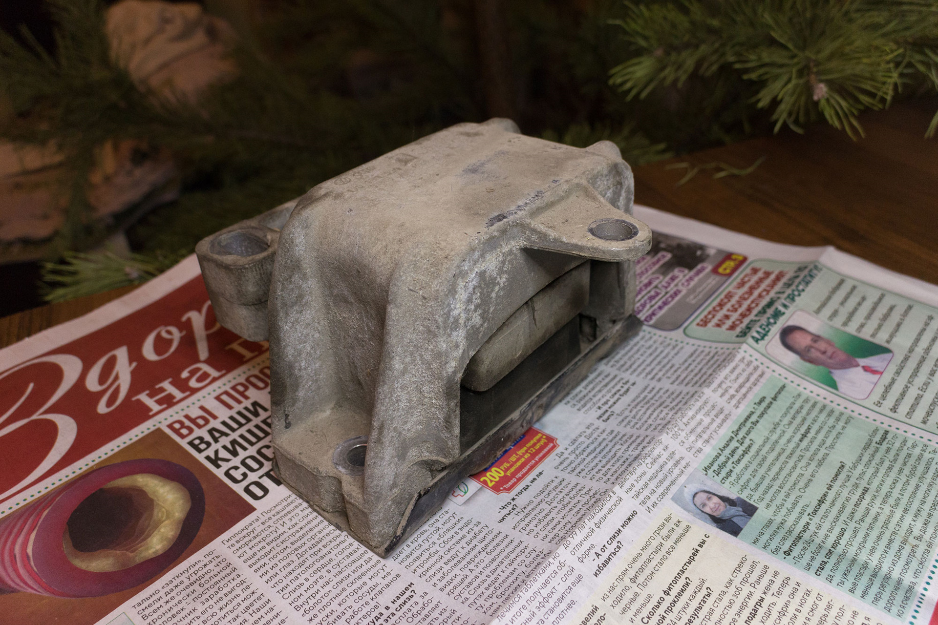 Последнее время беспокоили неприятные рывки при переключении передач и резком ускорении, что являлось следствием износа опоры КПП, которая расположена с левой стороны. Помимо этого была выявлена течь правого сальника коробки передач. Масло постепенно уходило и переключение скоростей стало происходить как-то суховато и жестковато.