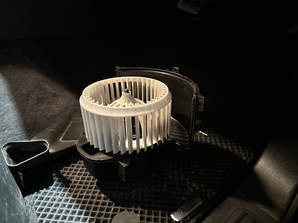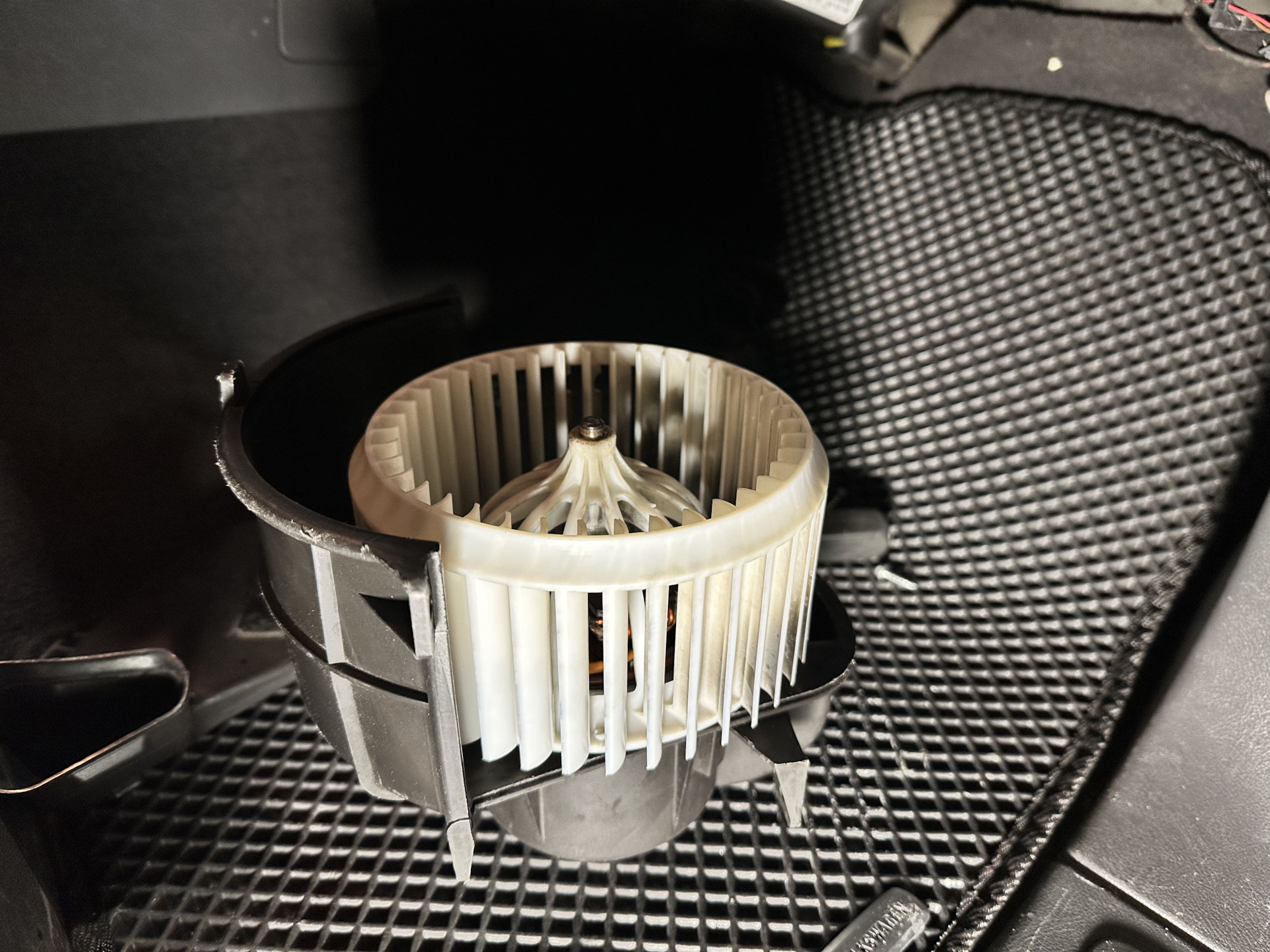 Вторым шагом заменил моторчик отопителя, установил в замен китайского оригинальный из своих запасов. В салоне стало тихо и приятно, доносится только приятный шелест из под панели…