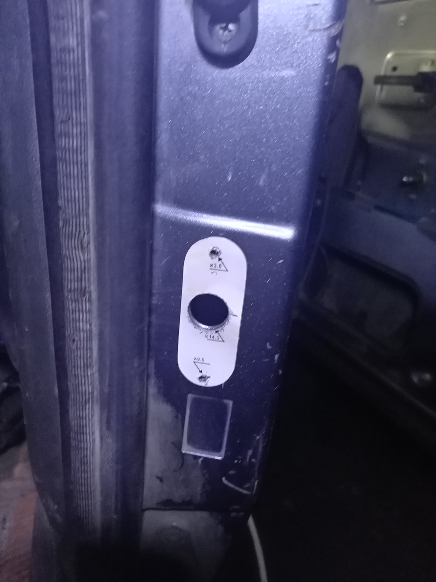 Для активатора ЦЗ пришлось дырявить дверь. Активатор прицепил на тягу блокировки