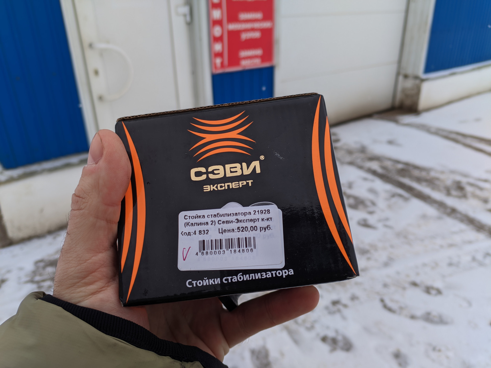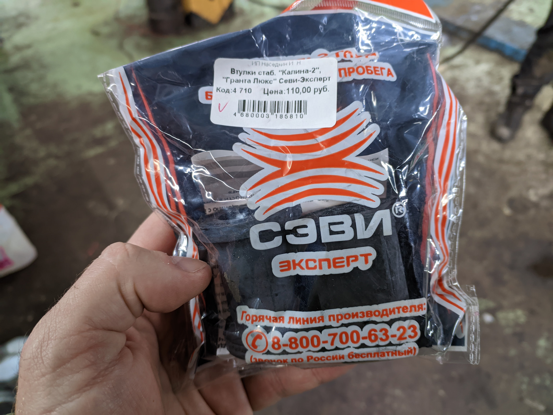 Мастер приговорил одну стойку стабилизатора (яйца) и втулки стабилизатора. Хорошо, что рядом с сервисом есть магазин (его держит хозяин сервиса) — купил там все необходимое для замены. Да, стабилизатор у меня 24 мм. Поэтому были некоторые сложности со втулками стабилизатора, но все же в магазине нашли нужные — последний экземпляр. Весь набор от компании СЭВИ Эксперт получился. В магазине компания в приоритете.