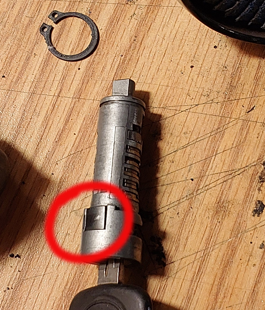 На время ремонта личинки, режим АСС в замке отключил, повернув механизм обычной плоской отвёрткой. Перед установкой вернул в исходное положение. Для тех кто будет повторять, предупреждение! В барабане в свободной форме, т.е. никак не закреплен, клин блокиратора АКПП. Не потеряйте его и не забудте поставить при сборке личинки.