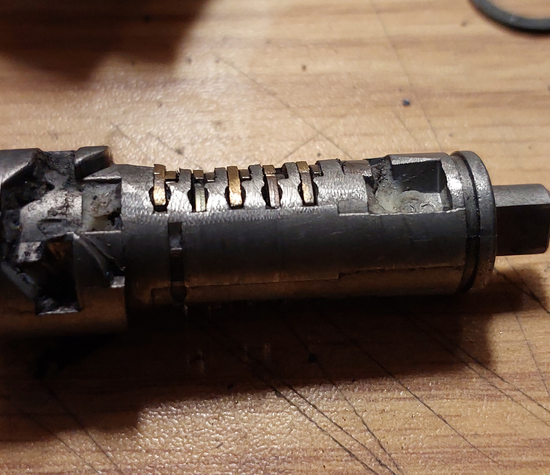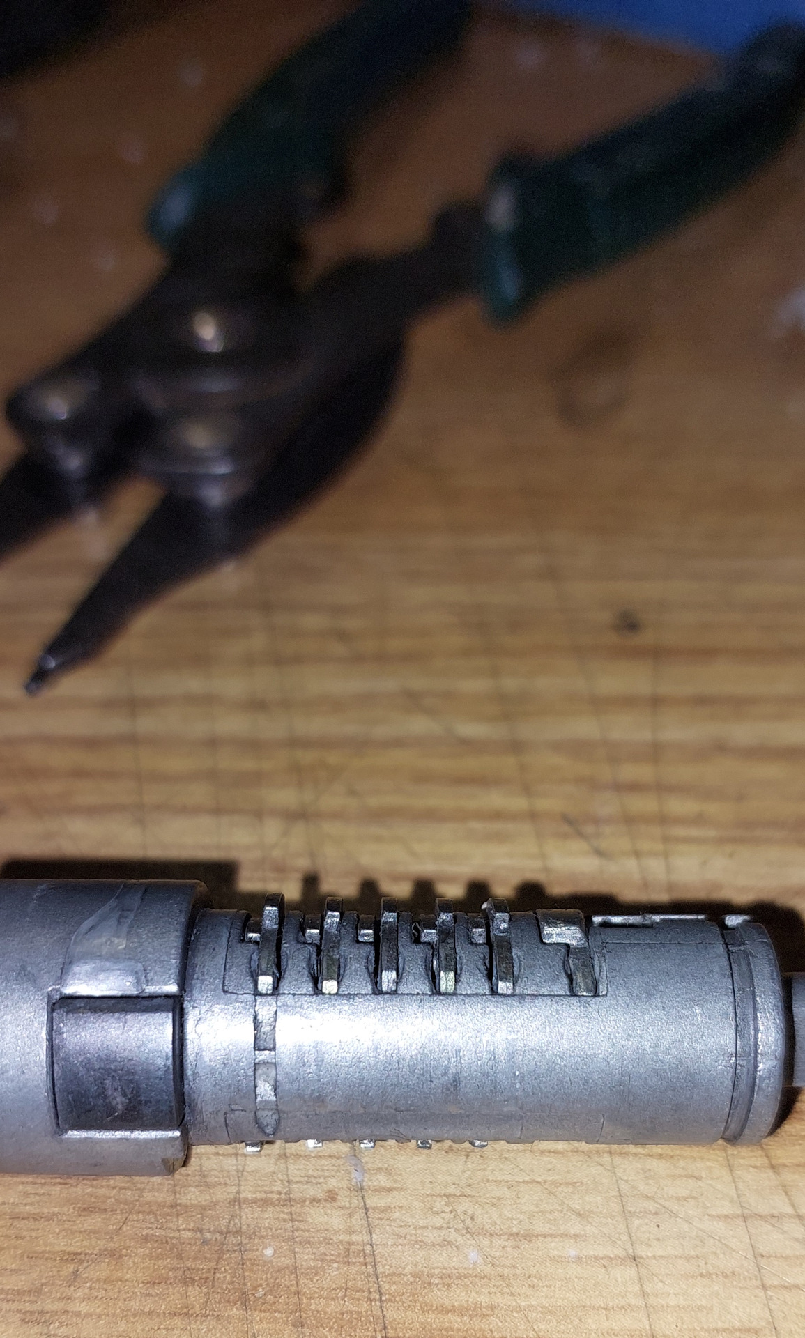 Хотел было выкинуть всю секретность, однако без ригелей ключ не фиксируется в замке. Поэтому банально сточил заподлицо с барабаном. Напильником будет правильнее и ровнее, но я ленивый да и инстумента такого нет в пользовании. Поэтому где то хапнул лишнего, ибо без очков вблизи виг вижу) Впрочем функционал полностью восстановлен. Секретность сохранилась. Ключ надёжно фиксируется в замке.