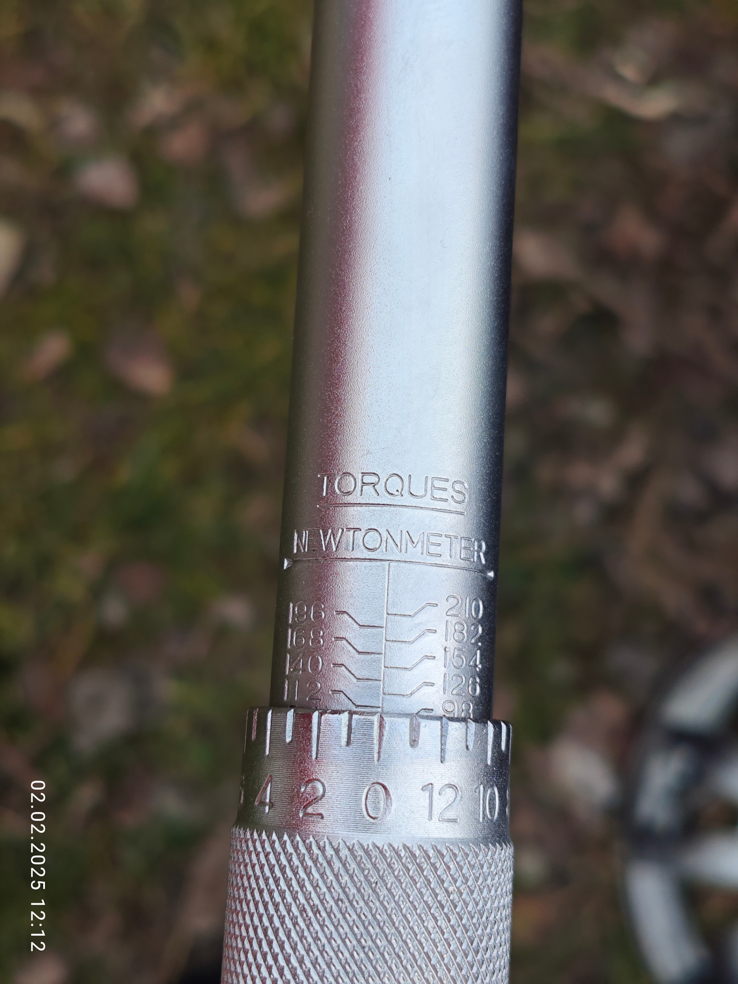 Далее всё просто – беру динамометрический ключ, выставляю момент 112 Нм, надеваю насадку и закручиваю.