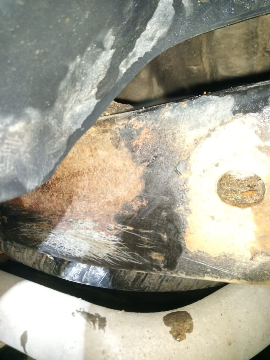 По интернету бьется сзади за правым задним колесом, почистил и не нашел, поехал в гараж и купил вытраитель ржавчины, замыл все до метала но вина почти нету.