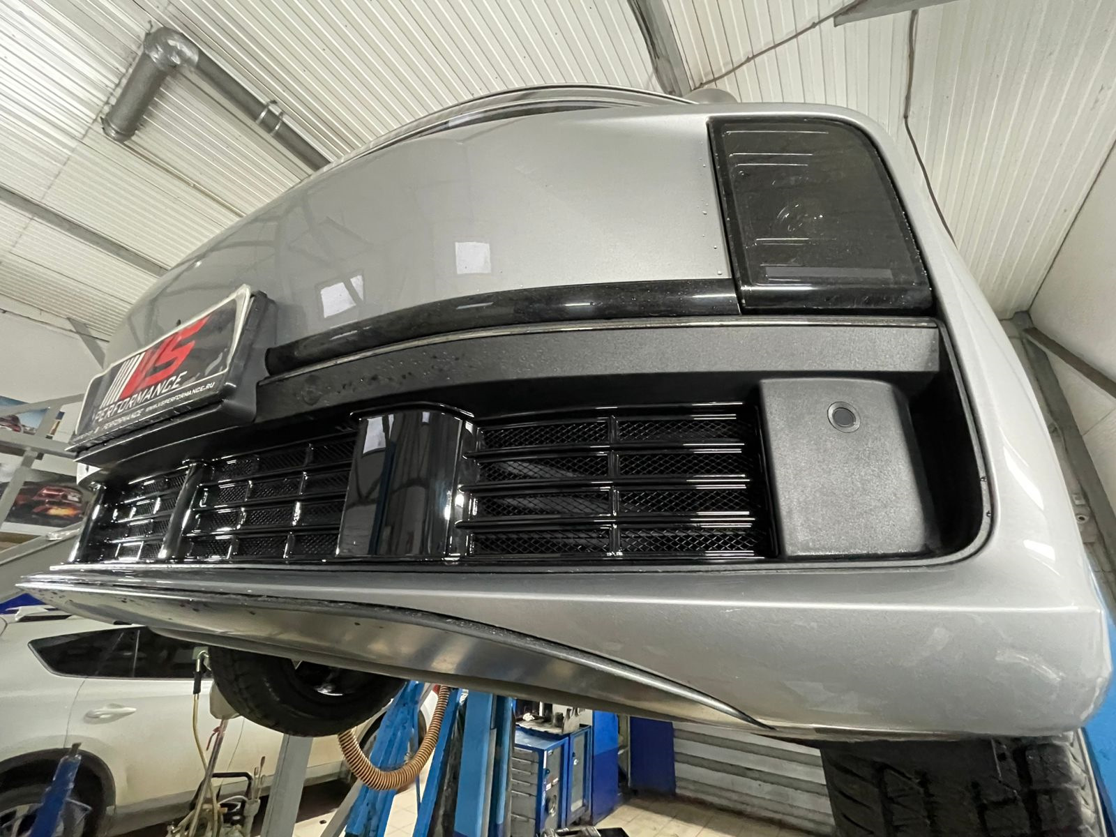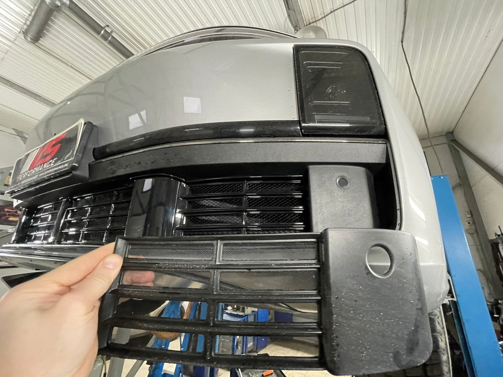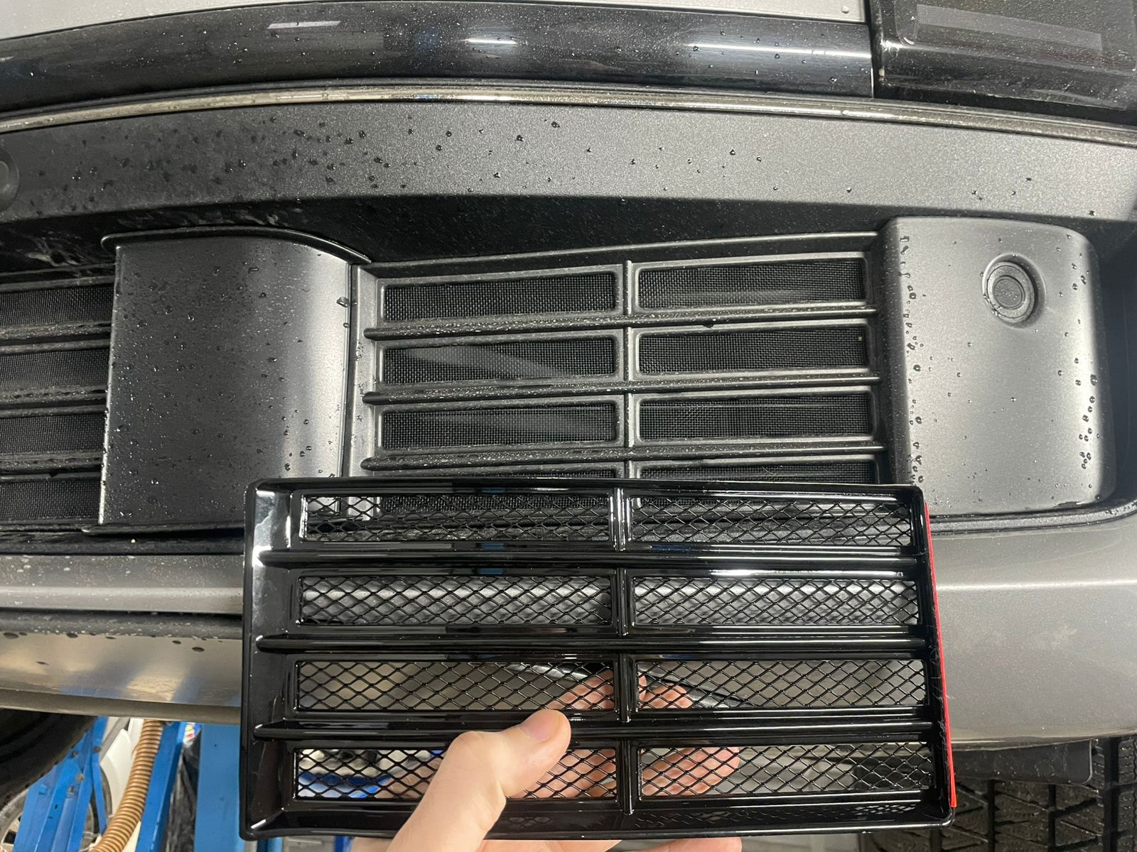 Я взял новые вставки бампера, на которые установили крупную сетку. Имея большой опыт эксплуатации мощных автомобилей, на мой взгляд — это оптимальное решение. Безусловно, наличие и крупной сетки чувствуется на какой-нибудь BMW M5 F90. Но стараемся приходить к компромиссам.