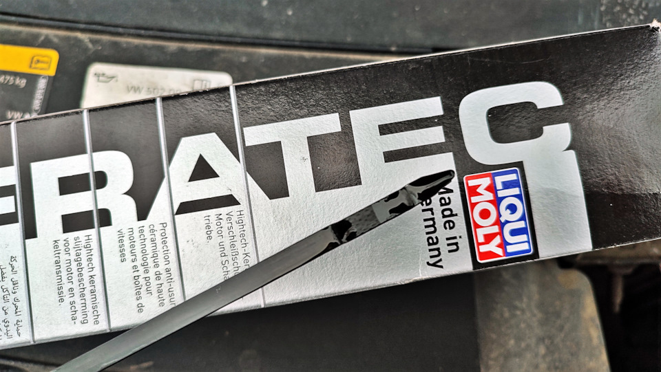 Стремно конечно было заливать в двигатель что то с КЕРАМИКОЙ, звучит так будто песочку насыпал, но нет жижа очень скользкая и никаких вкраплений и каких то частиц на ощупь просто нет и быть не может. В целом как выше описал — двигатель стал работать в разы лучше а эффект в виде использования присадки LIQUI MOLY Cera Tec позволяет существенно продлить срок службы мотора и обеспечивать долговременную защиту системы двигателя даже в условиях перегрузок, а так же присадка укрепляют стенки цилиндров и поверхности поршневых колец, защищая двигатель при жестких режимах работы.