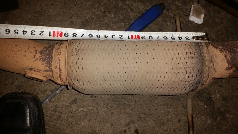 Салют! Ну чтож кто помнит готовился я к этому пару недель в основном к замене гофры! Курил наш и не только форум))) узнавал что да как, так вот сегодня я вам и расскажу как заменить гофру и выбить катализатор, для начала на форуме так и не смог определится с покупкой новой гофры точнее какого плана купить по структуре я решил а вот сколько сантиметров в длину и диаметр самой гофры я что то запутался и решил вымерять сам: и так диаметр трубы в том месте где вваривают гофру у меня оказалось ровно 57мм а длину гофры я намерил 24 см а на форуме советовали разную длину от сварки до сварки но не спешите бежать в магазин так как гофра у меня практически оторвалась я не учел что она растянулась в итоге: диаметр d57мм а вот длина от края до края всей длины лично у меня 21см Но я это уже понял после покупки новой гофры и снятия кат коллектора.