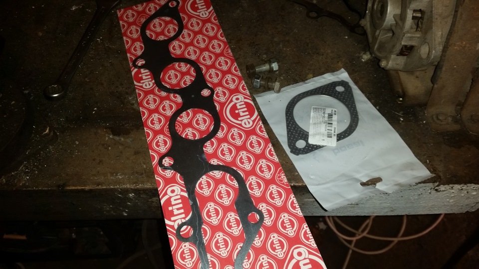 Ну что сказано сделано во первых заказал две прокладки одну на колектор вторую вниз на соединение со средней частью цена села что то око 1 килорубля две прокладки и приготовил 2 болта М 10 две гайки и два гровера так как там снизу на креплении со средней частью стоят шпильки по типу как на ступица их открутить не вариант сгорели их срезаем вбиваем и за место них 2 болта))