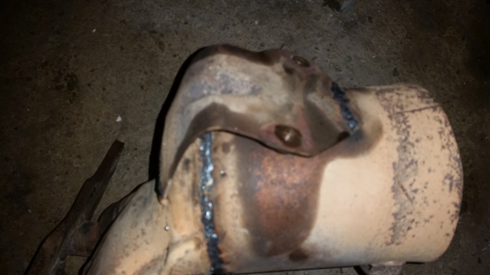 там в как раз получается что труба чётко входит в неё и обваривается, но что же делать с длиной ведь теперь длине порядком на 5-6 см и тут приходит гениальная мысли о том что пустой катализатор всёровно будет звинеть так вот берем и укорачиваем его на 6 см))) привариваем все на место и кайфуем)))