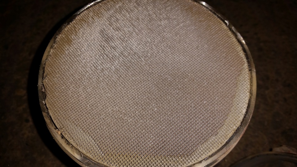 вырезаем сразу же по всему диаметру катализатор с обоих сторон и видем