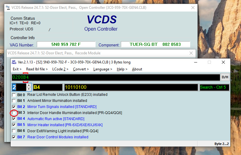 Подсветка ручки не заработала, закодировал блок пассажирской двери: