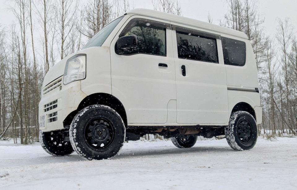 Ну, я ж с лифтом его купил. Стоял он на 175/80/13. Понятно, что с переходом на 14 дюймовый диск клиренс подрос, но не так сильно. Я на стоке и не ездил.