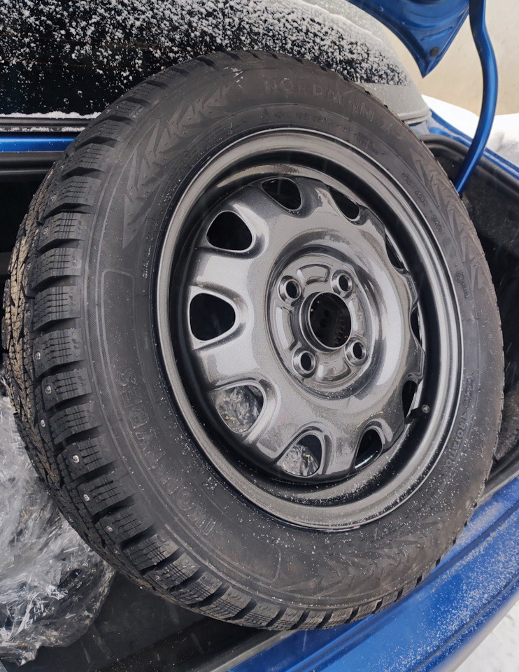 Купил стальные диски(в Хабаровске же) 14 дюймов диаметр, 4.5 шириной, вылет 45 приемлемого дизайна.