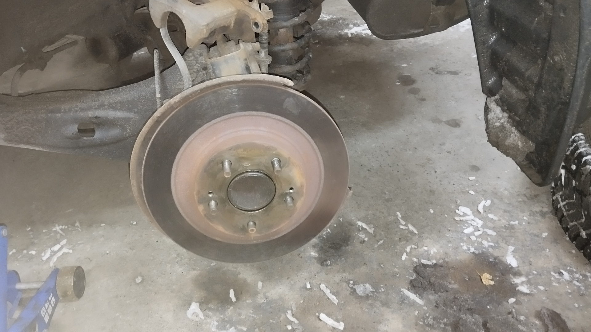снимаем колесо, откручиваем суппорт, убираем его в сторону, вытаскиваем наши диски, снимаем тормозную скобу суппорта и на верстак,