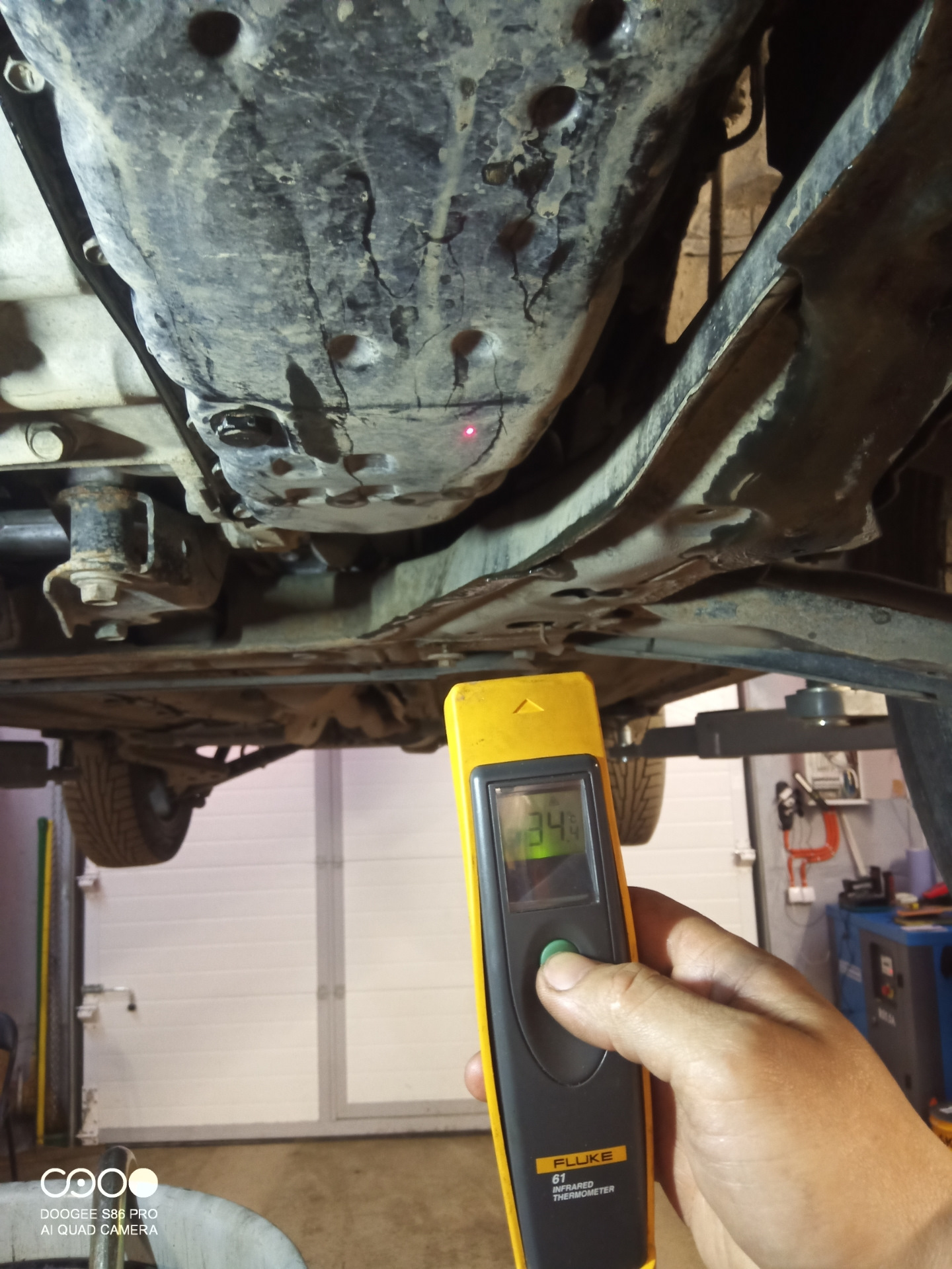 На выход позвали жену мастера, она села в Седого, завела и их подняли на подъёмнике . Минут примерно через 10, прибором (не помню название) замерили температуру поддона коробки…