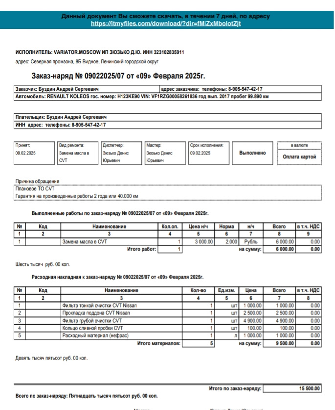 И менять масло в вариаторе думал там же, в RG, но в чате Колеосоводов хвалили сервис Variator. Moscow. Проконсультировавшись за них и услышав много хорошего о их отношении к работе и качестве, решил не торопиться с выбором сервиса.