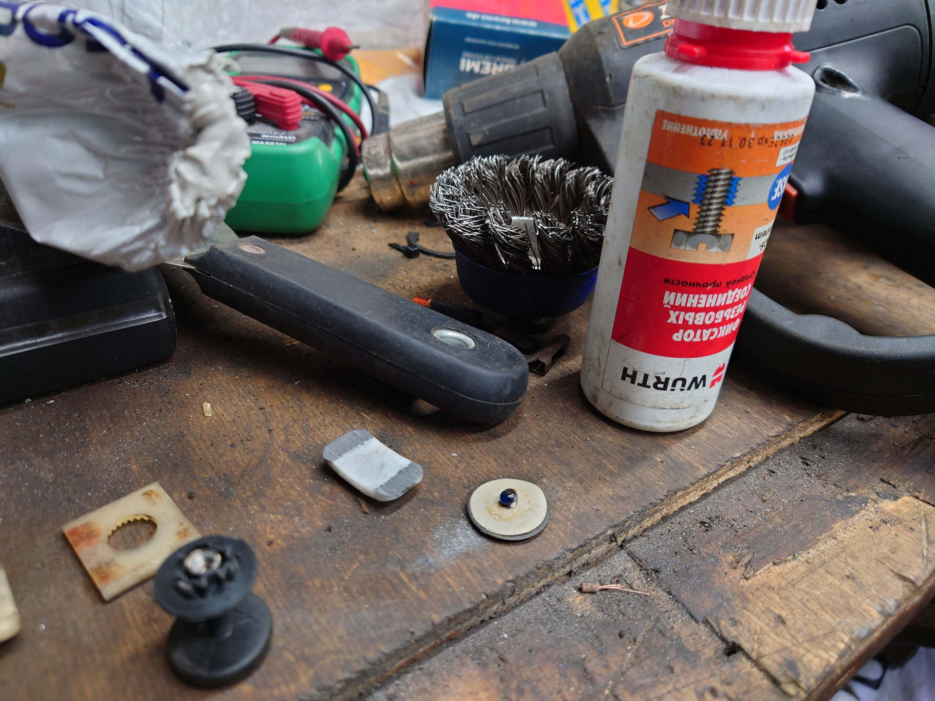 Можно строительным феном, но это выходит дольше. Я грел газовой горелкой основание грибка, раза три поводил туда сюда и придерживая с др стороны винт пальцем в прорезиновой перчатке, чтобы не прокручивался и съемником маслосъемных колпачков зажимал грибок с хорошим усилием откручивал. И! быстро старайся, а то там брезентовая шайба отклеится и уже вместе с винтом будет крутиться…
