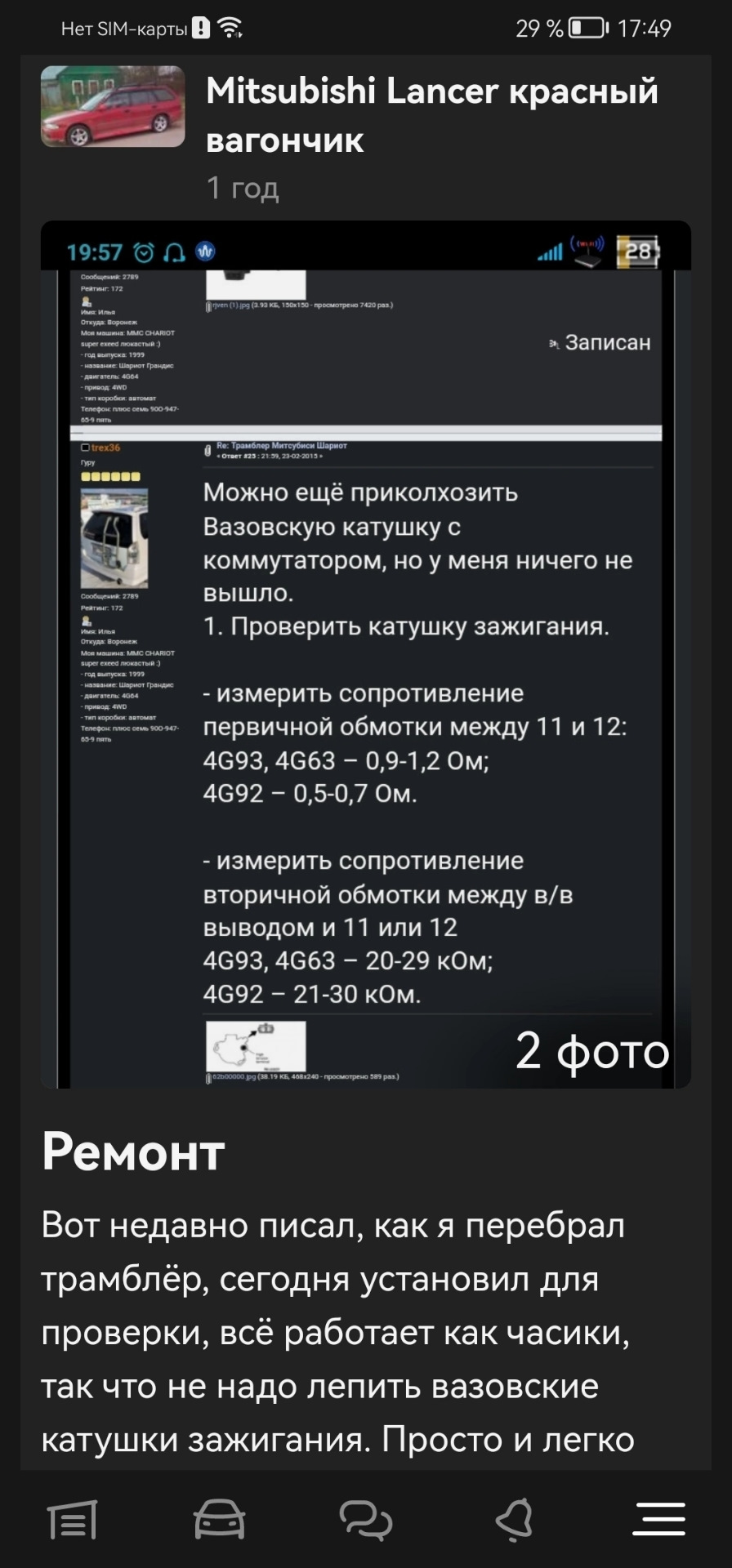 Все поменял. Поставил, завелась, поехал проверит все ли нормально(не зря). Заехал заправился, выехал, газ в пол, первая, вторая и все, закончилось счастье. Вышел глянул все на месте, вытащил броне провод, проверил на наличие искры, наличия нету. Поехал на тросу в гараж, померил сопротивление катушки. Скорее всего мёртвая.