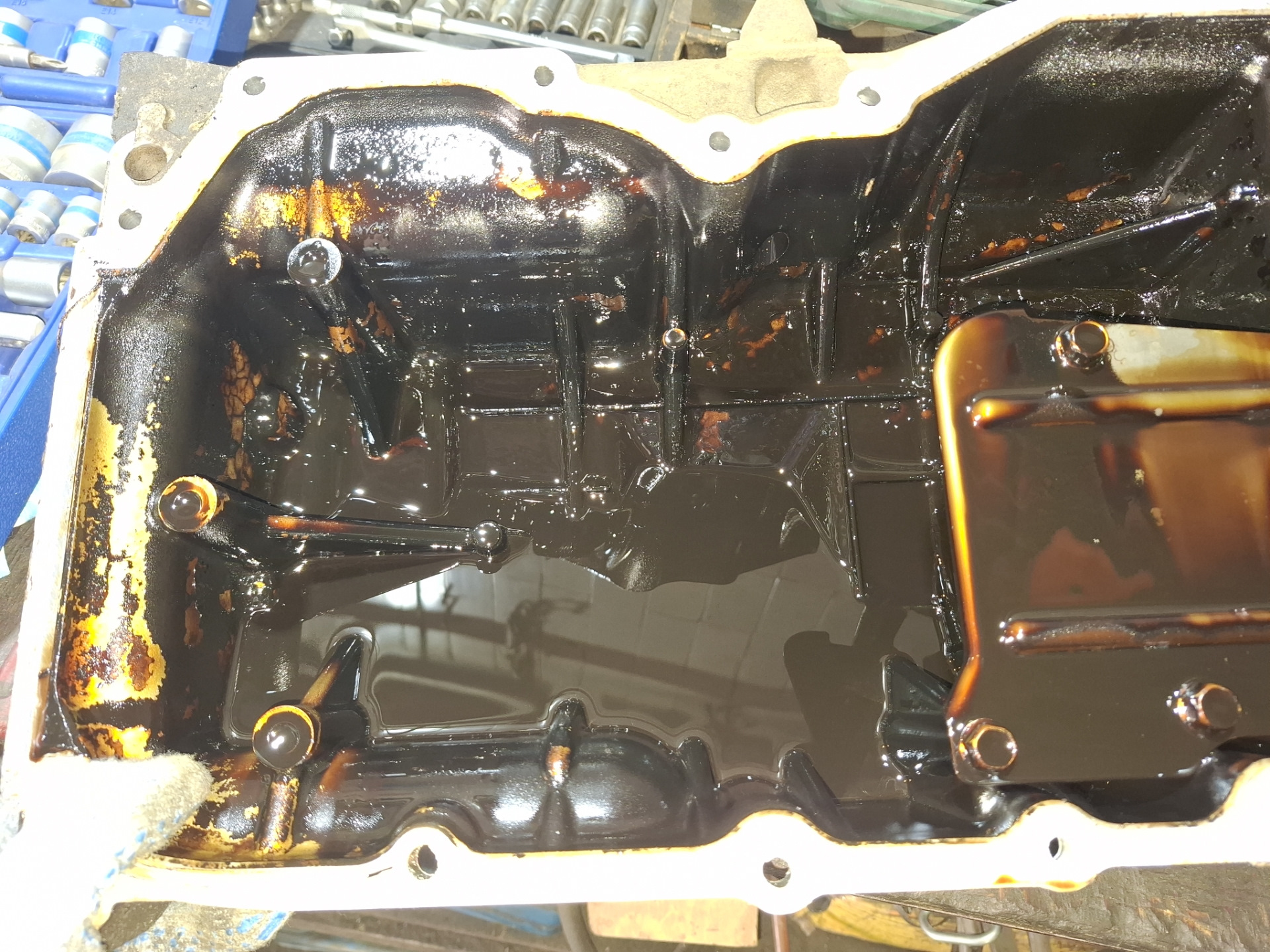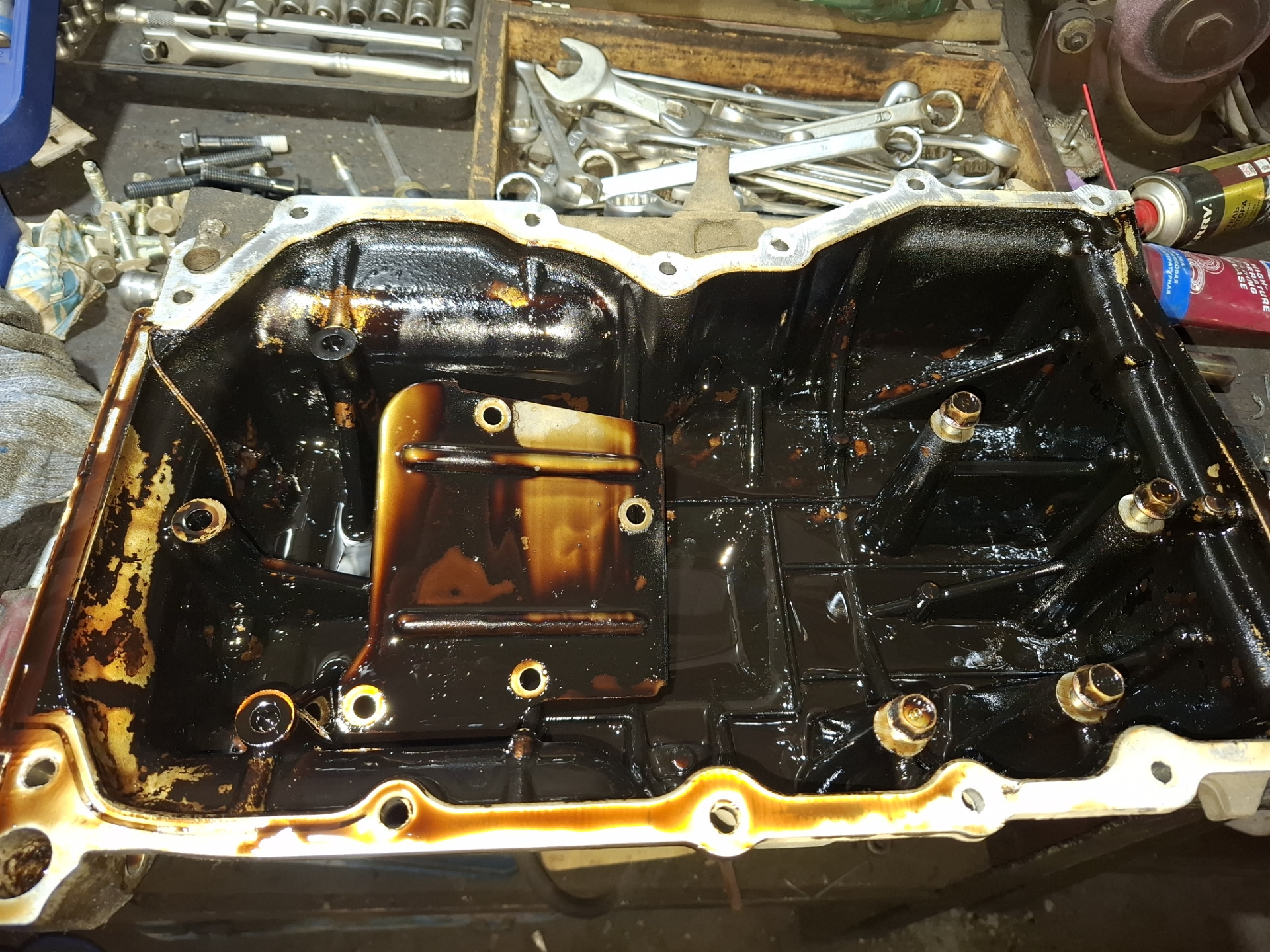 Когда я снял поддон картера, то я морально был готов, но живьём я на своих авто этого не видел