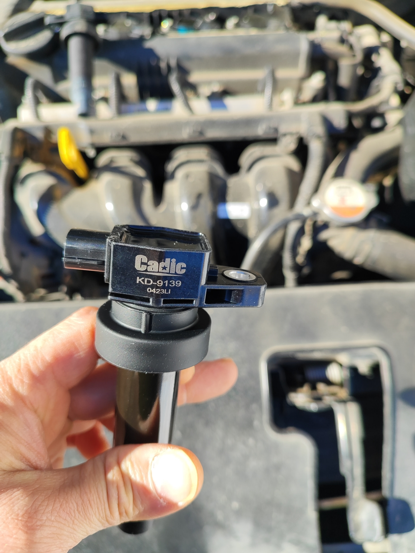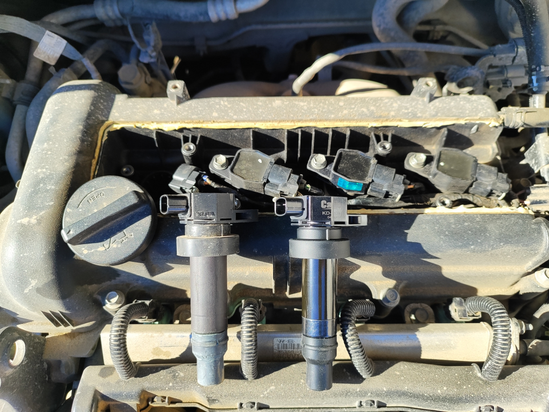 Приветствую всех. Перестала работать катушка зажигания, ОВД показало ошибку 4 цилиндра. Перестановкой катушек местами, выяснил что катушка покинула чат, а не свеча. В запасе была катушка Cadic kd-9139 и свечи NGK. Как поменял, двигатель стал работать ровно.
