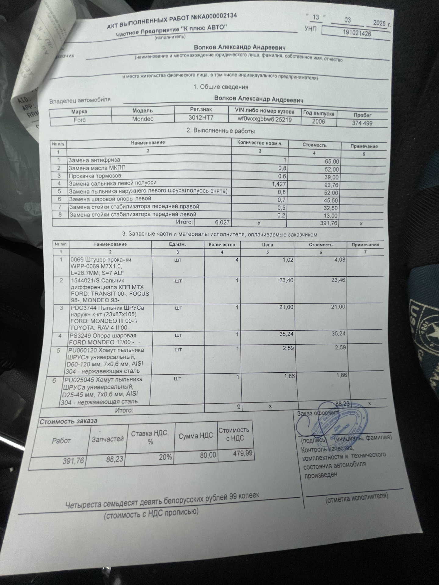 Это то, что покупал сам. Пыльник, шаровую и сальник заказывали на СТО. Кому интересны артикулы- на фото есть.