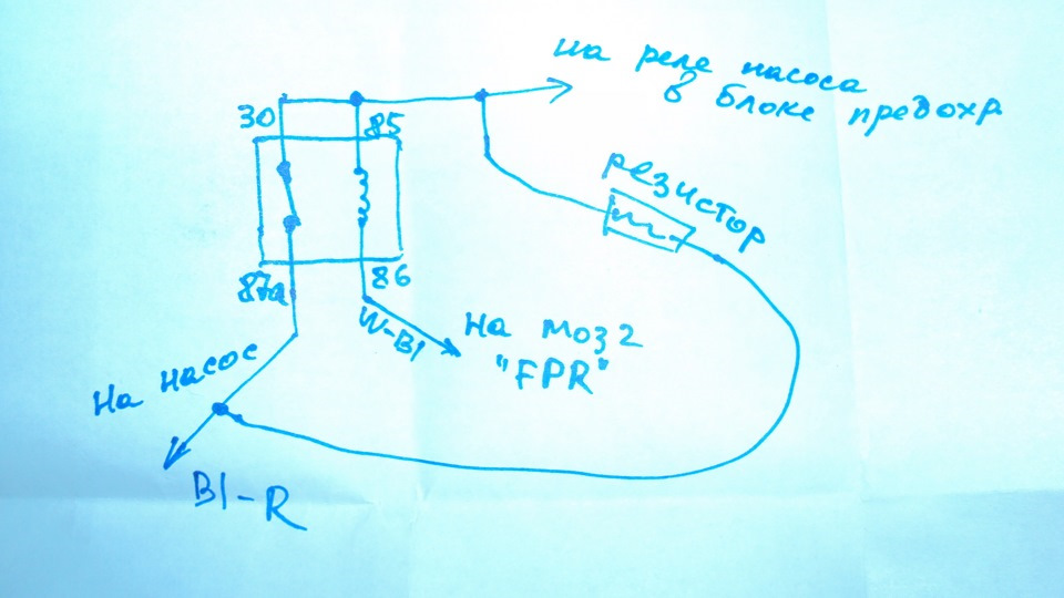 Таким образом, после того как машина запускается, благодаря резистору, уменьшается напряжение и насос меньше даёт давления топлива, соответственно расход становится меньше и не переливает. Когда даёшь газ, с блока управления идёт сигнал FPR на реле, можно услышать как оно щёлкает и делая самодиагностику, 78 ошибка пропадает- значит система работает!